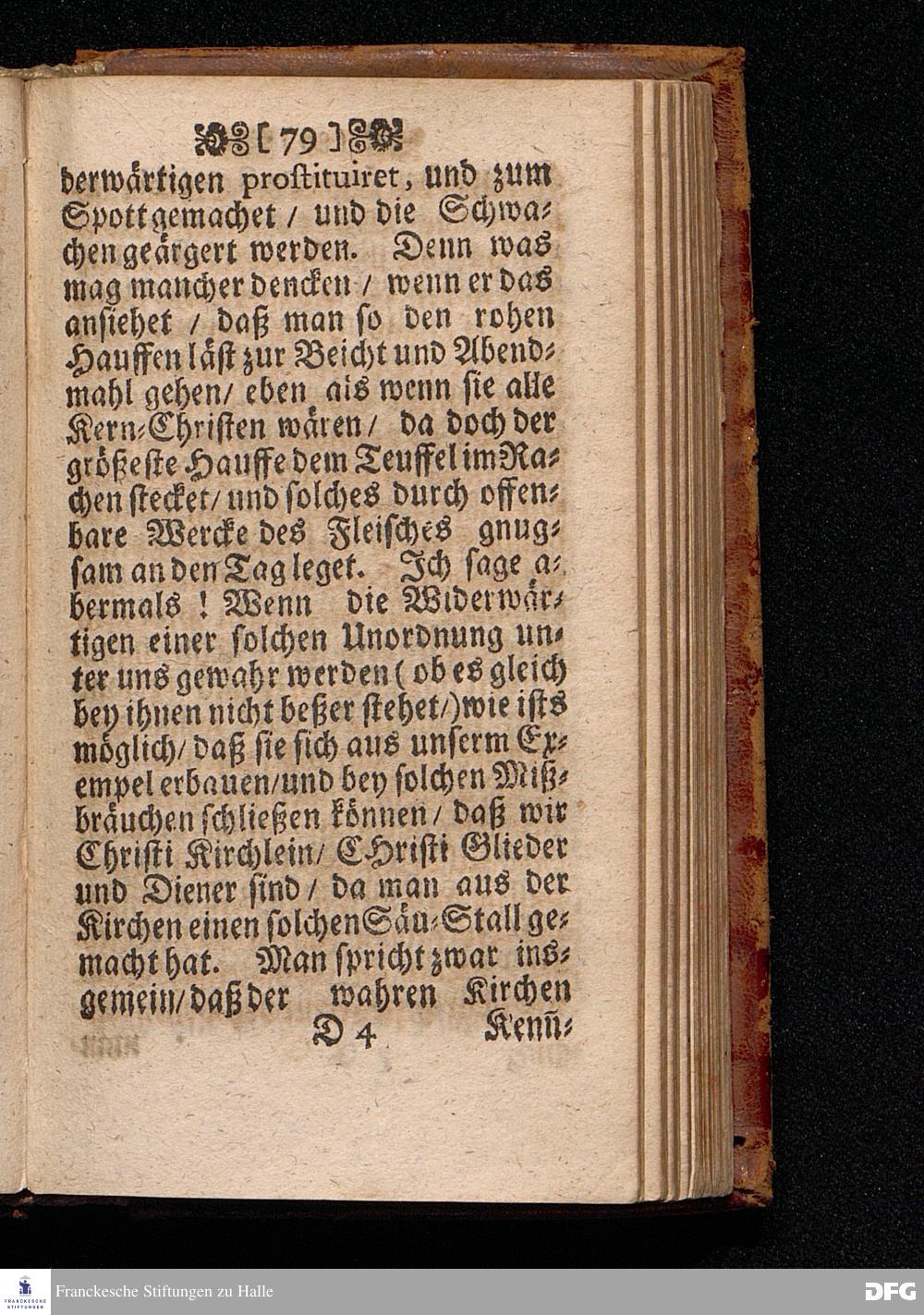 Der Unverantwortliche Mißbrauch des H.Abendmahls In der Evangel.Kirchen / In einer Predigt über I.Cor.XI, 23-33. Am Grünen Donners=Tage ANNO 1699. fürgestellet / und Zu wohlgemeinter Erweckung Der meisten Lehrer u. Zuhörer / die in solchem Mißbrauch so sicher dahin gehen / zum andern mal ans Licht gegeben von M.August Hermann Francken / SS.Theol.Gr.& OO.LL.PP.Ord.& P.Glauch. HALLE / Gedruckt bey Christian Henckeln / Univers.Buchdr. 1699.