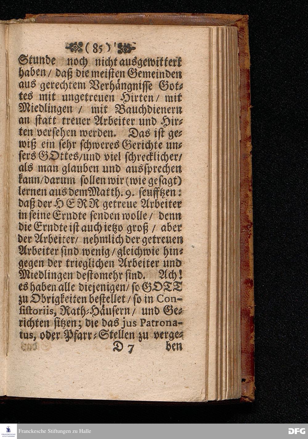 Der Unverantwortliche Mißbrauch des H.Abendmahls In der Evangel.Kirchen / In einer Predigt über I.Cor.XI, 23-33. Am Grünen Donners=Tage ANNO 1699. fürgestellet / und Zu wohlgemeinter Erweckung Der meisten Lehrer u. Zuhörer / die in solchem Mißbrauch so sicher dahin gehen / zum andern mal ans Licht gegeben von M.August Hermann Francken / SS.Theol.Gr.& OO.LL.PP.Ord.& P.Glauch. HALLE / Gedruckt bey Christian Henckeln / Univers.Buchdr. 1699.
