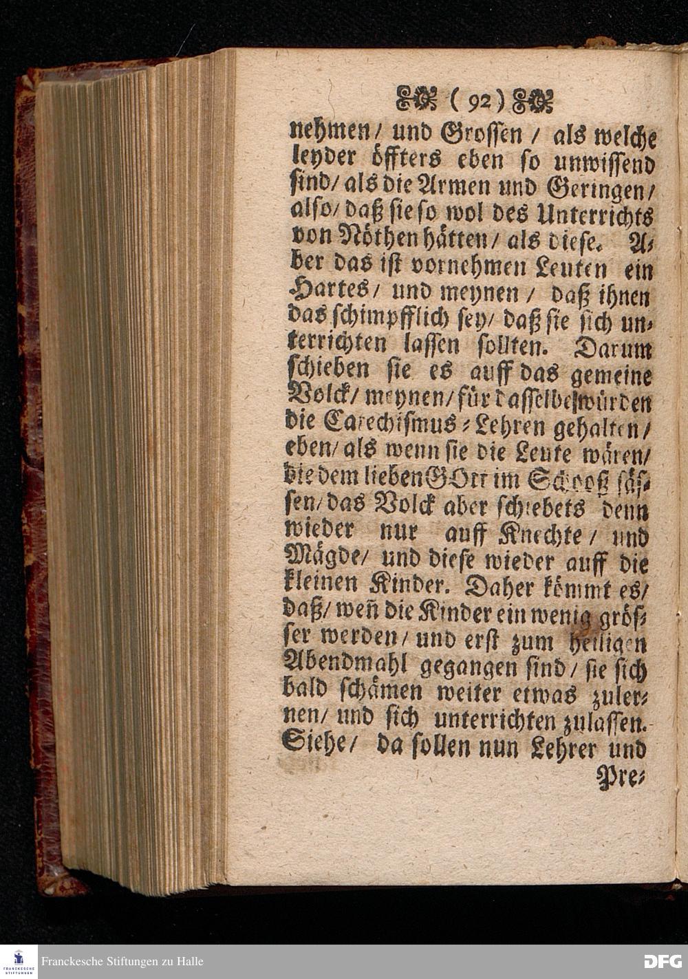 Der Unverantwortliche Mißbrauch des H.Abendmahls In der Evangel.Kirchen / In einer Predigt über I.Cor.XI, 23-33. Am Grünen Donners=Tage ANNO 1699. fürgestellet / und Zu wohlgemeinter Erweckung Der meisten Lehrer u. Zuhörer / die in solchem Mißbrauch so sicher dahin gehen / zum andern mal ans Licht gegeben von M.August Hermann Francken / SS.Theol.Gr.& OO.LL.PP.Ord.& P.Glauch. HALLE / Gedruckt bey Christian Henckeln / Univers.Buchdr. 1699.