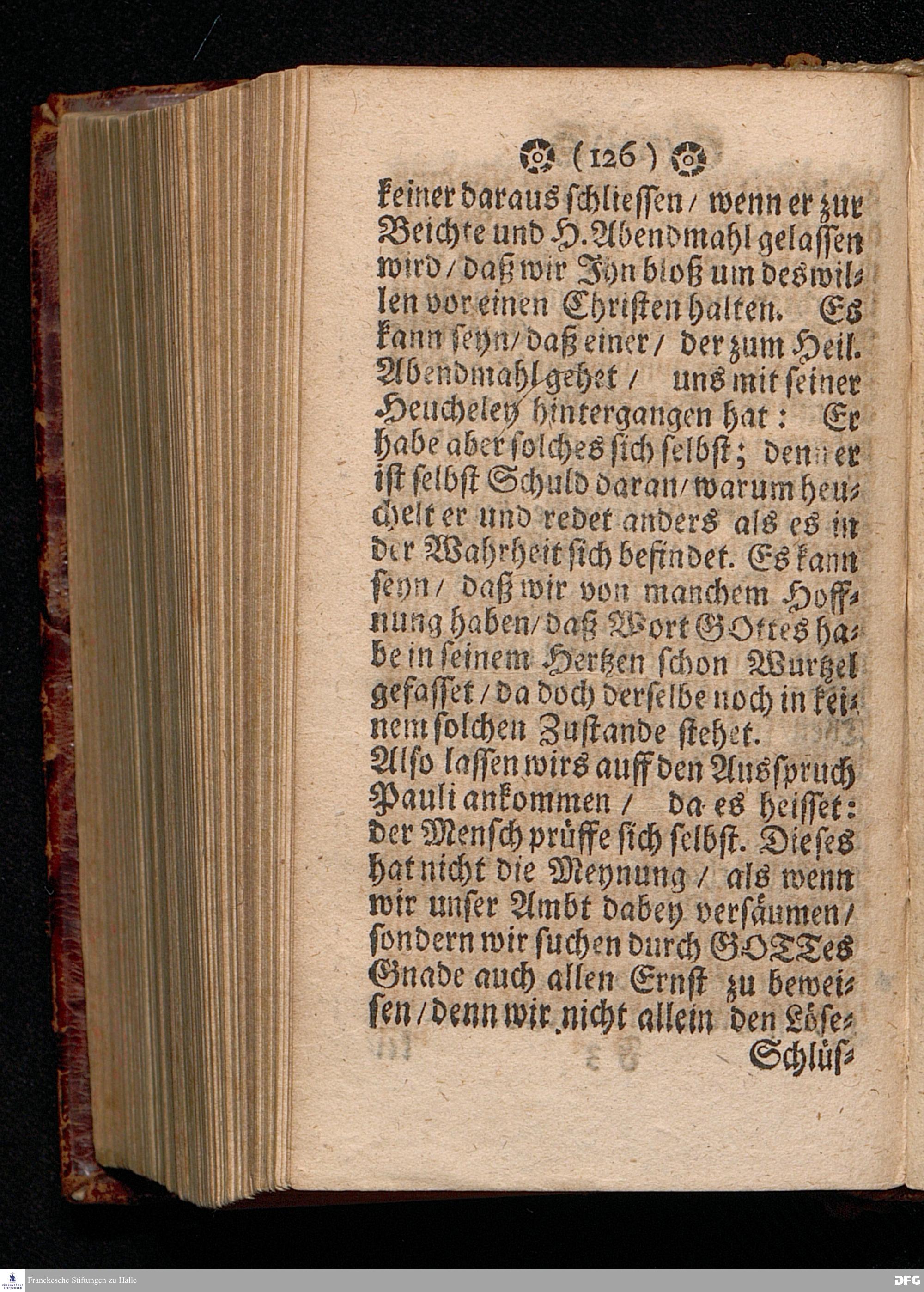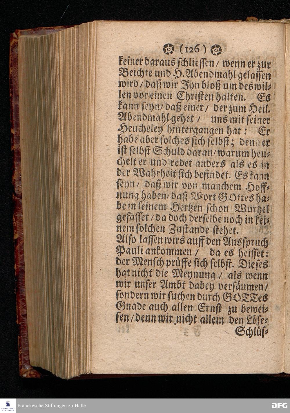 Der Unverantwortliche Mißbrauch des H.Abendmahls In der Evangel.Kirchen / In einer Predigt über I.Cor.XI, 23-33. Am Grünen Donners=Tage ANNO 1699. fürgestellet / und Zu wohlgemeinter Erweckung Der meisten Lehrer u. Zuhörer / die in solchem Mißbrauch so sicher dahin gehen / zum andern mal ans Licht gegeben von M.August Hermann Francken / SS.Theol.Gr.& OO.LL.PP.Ord.& P.Glauch. HALLE / Gedruckt bey Christian Henckeln / Univers.Buchdr. 1699.