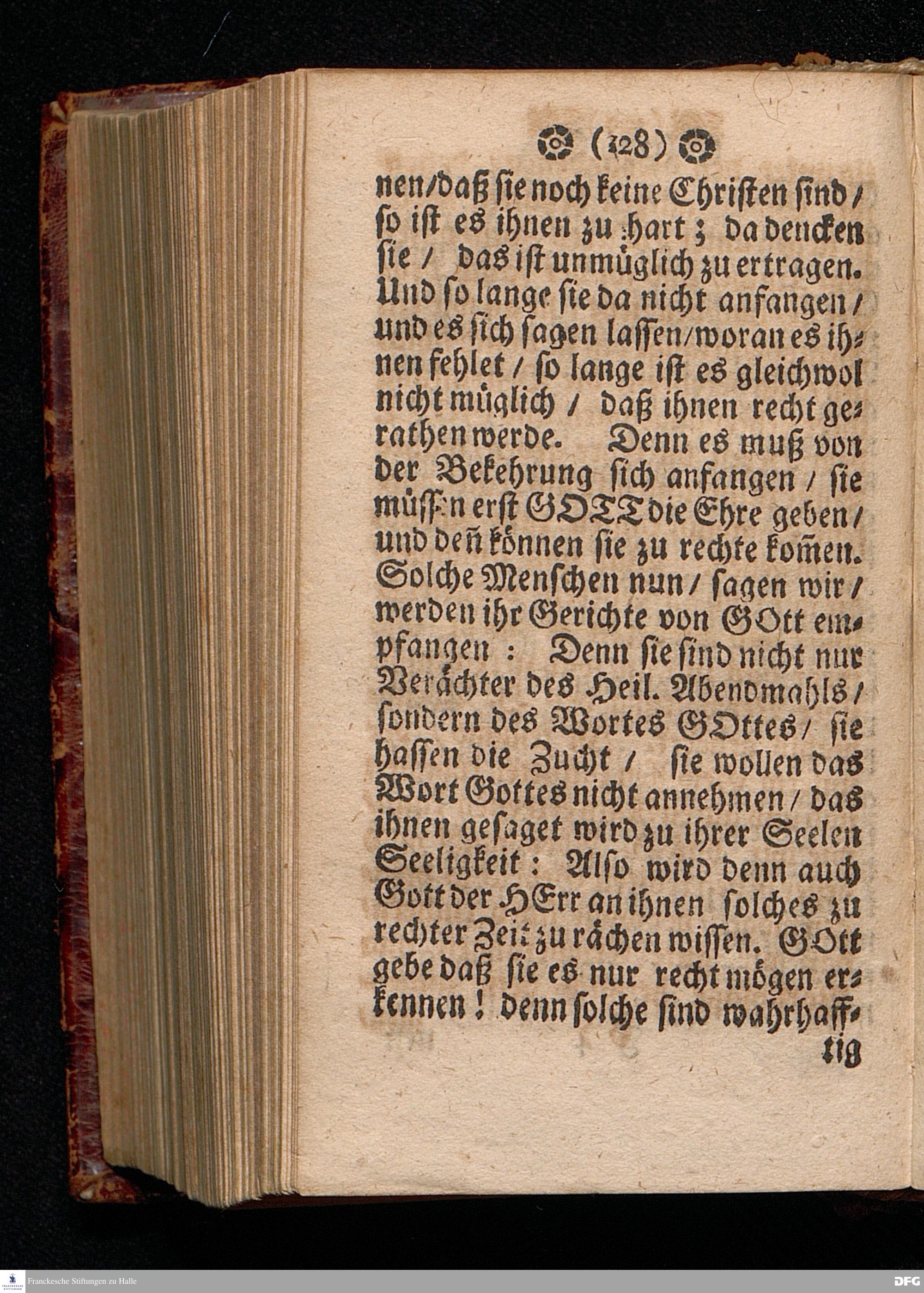 Der Unverantwortliche Mißbrauch des H.Abendmahls In der Evangel.Kirchen / In einer Predigt über I.Cor.XI, 23-33. Am Grünen Donners=Tage ANNO 1699. fürgestellet / und Zu wohlgemeinter Erweckung Der meisten Lehrer u. Zuhörer / die in solchem Mißbrauch so sicher dahin gehen / zum andern mal ans Licht gegeben von M.August Hermann Francken / SS.Theol.Gr.& OO.LL.PP.Ord.& P.Glauch. HALLE / Gedruckt bey Christian Henckeln / Univers.Buchdr. 1699.