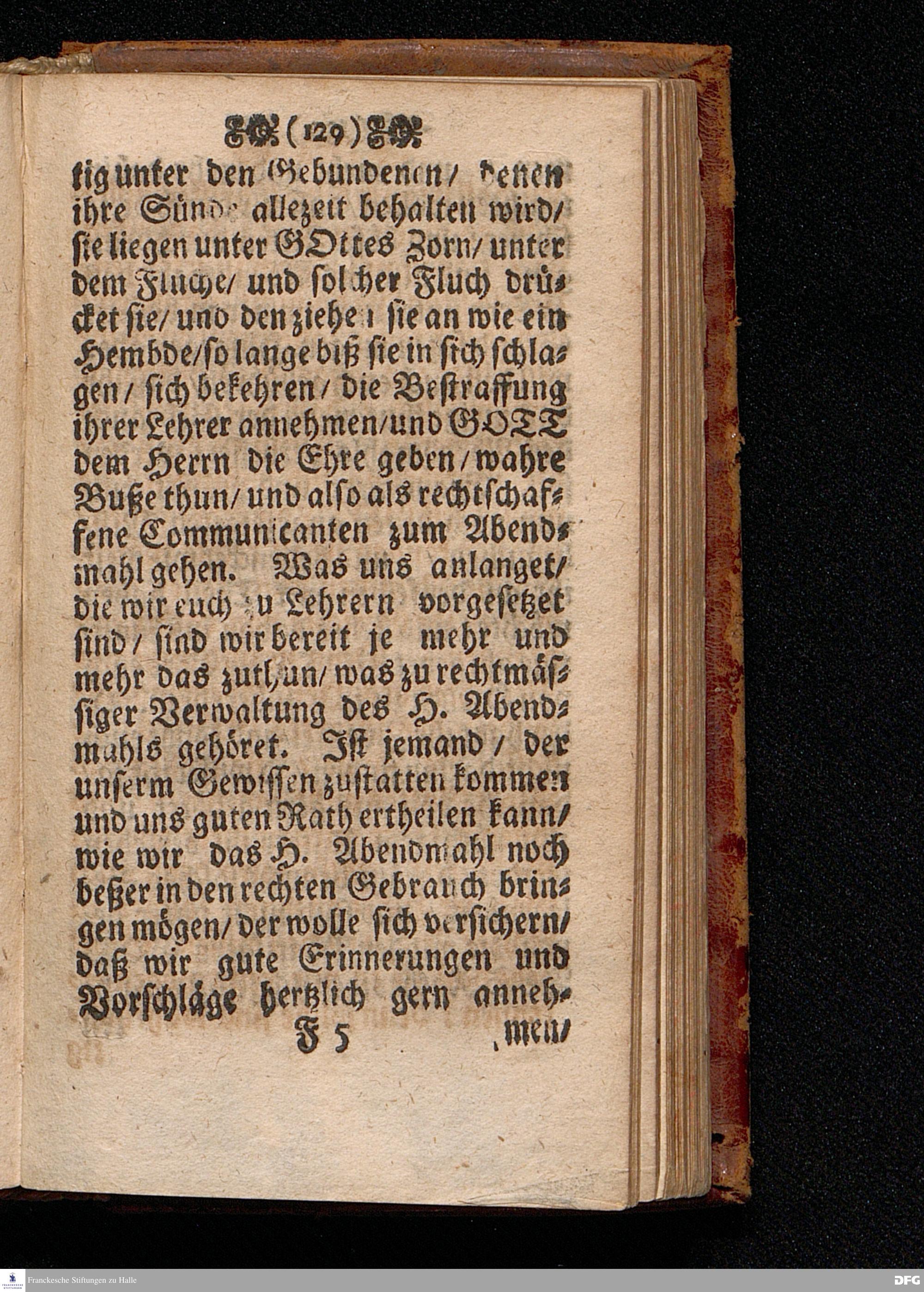 Der Unverantwortliche Mißbrauch des H.Abendmahls In der Evangel.Kirchen / In einer Predigt über I.Cor.XI, 23-33. Am Grünen Donners=Tage ANNO 1699. fürgestellet / und Zu wohlgemeinter Erweckung Der meisten Lehrer u. Zuhörer / die in solchem Mißbrauch so sicher dahin gehen / zum andern mal ans Licht gegeben von M.August Hermann Francken / SS.Theol.Gr.& OO.LL.PP.Ord.& P.Glauch. HALLE / Gedruckt bey Christian Henckeln / Univers.Buchdr. 1699.