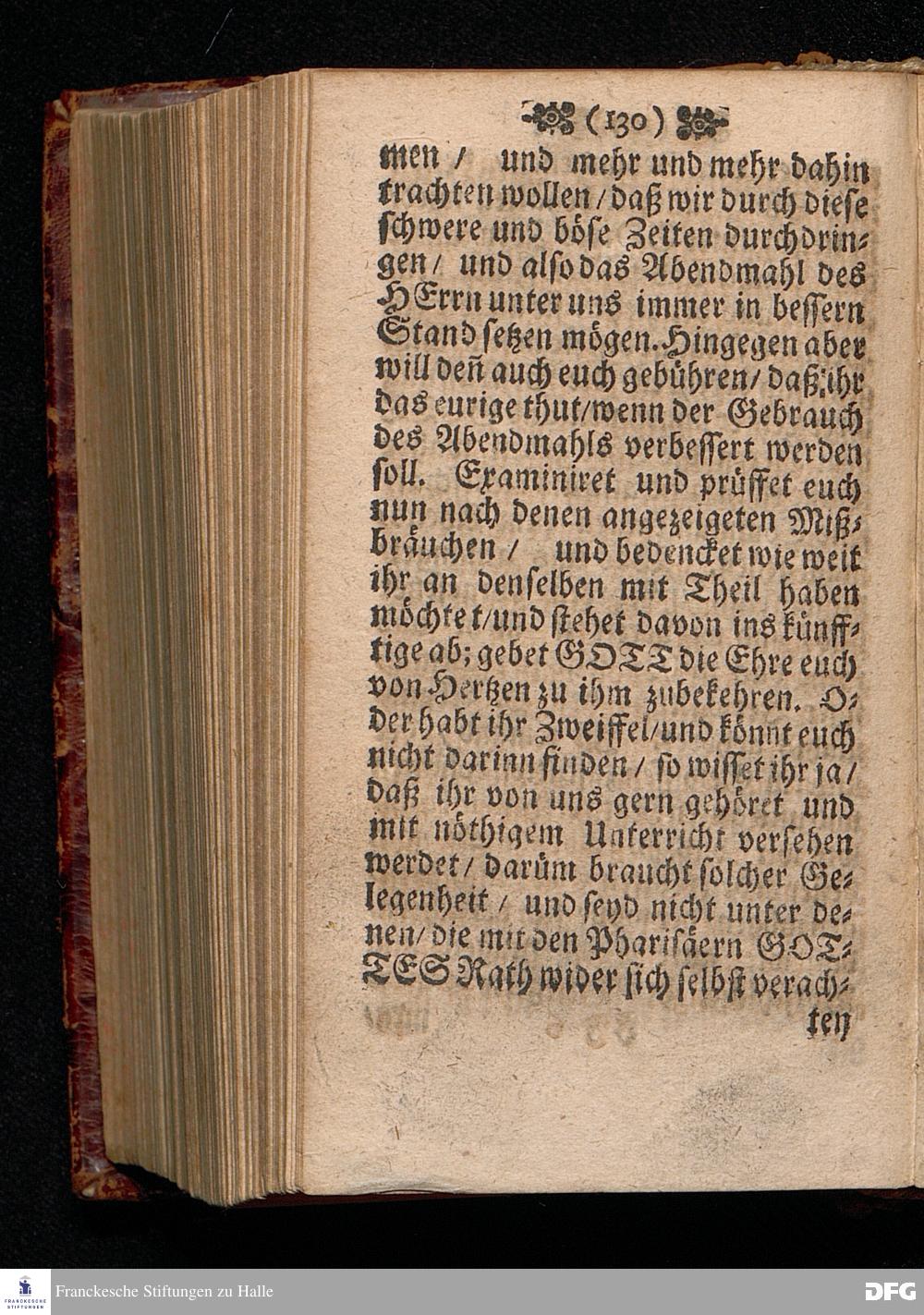 Der Unverantwortliche Mißbrauch des H.Abendmahls In der Evangel.Kirchen / In einer Predigt über I.Cor.XI, 23-33. Am Grünen Donners=Tage ANNO 1699. fürgestellet / und Zu wohlgemeinter Erweckung Der meisten Lehrer u. Zuhörer / die in solchem Mißbrauch so sicher dahin gehen / zum andern mal ans Licht gegeben von M.August Hermann Francken / SS.Theol.Gr.& OO.LL.PP.Ord.& P.Glauch. HALLE / Gedruckt bey Christian Henckeln / Univers.Buchdr. 1699.