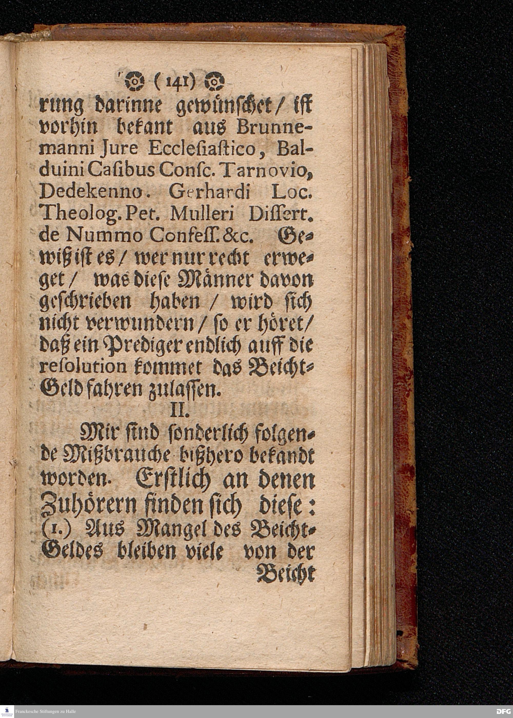 Der Unverantwortliche Mißbrauch des H.Abendmahls In der Evangel.Kirchen / In einer Predigt über I.Cor.XI, 23-33. Am Grünen Donners=Tage ANNO 1699. fürgestellet / und Zu wohlgemeinter Erweckung Der meisten Lehrer u. Zuhörer / die in solchem Mißbrauch so sicher dahin gehen / zum andern mal ans Licht gegeben von M.August Hermann Francken / SS.Theol.Gr.& OO.LL.PP.Ord.& P.Glauch. HALLE / Gedruckt bey Christian Henckeln / Univers.Buchdr. 1699.
