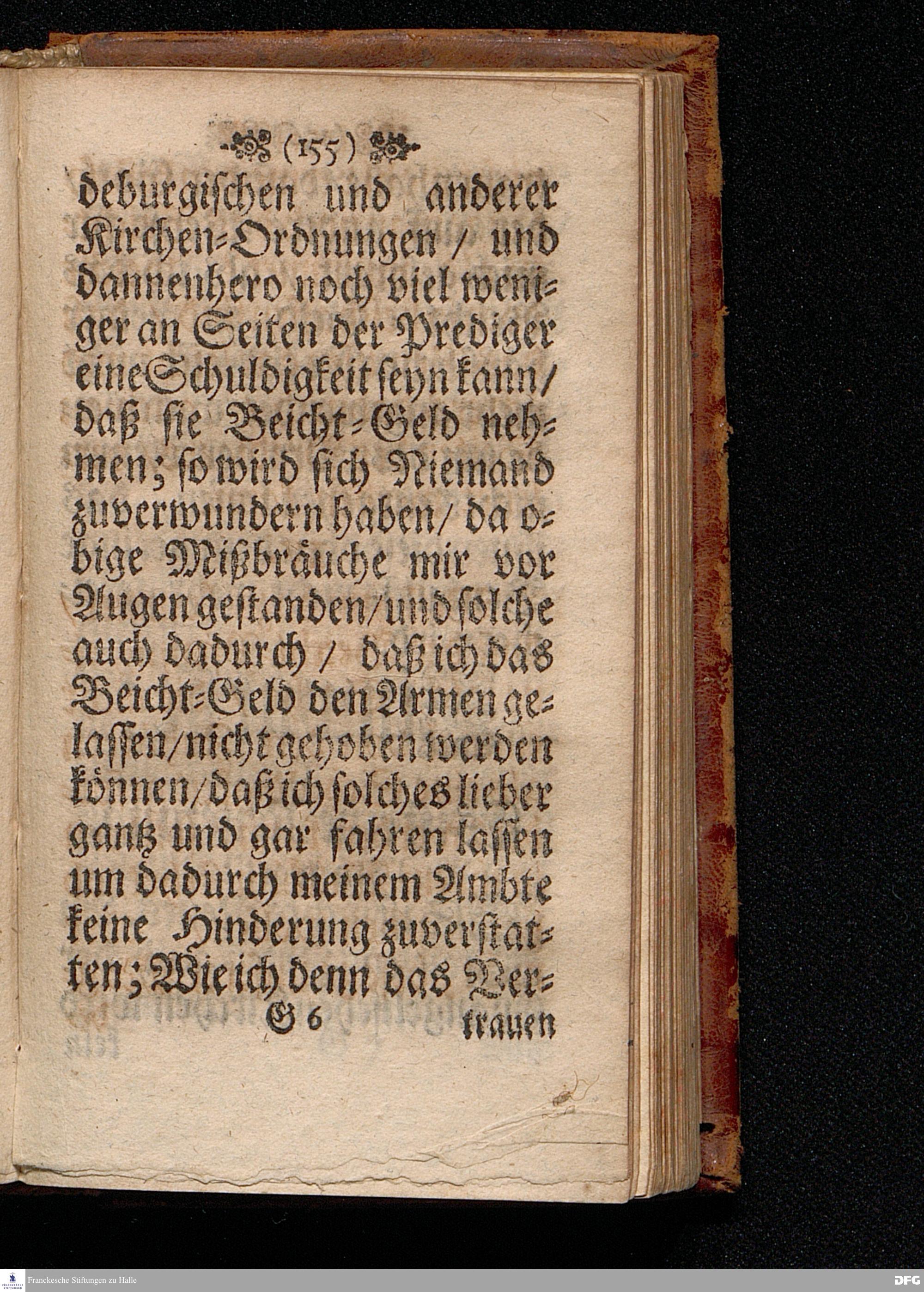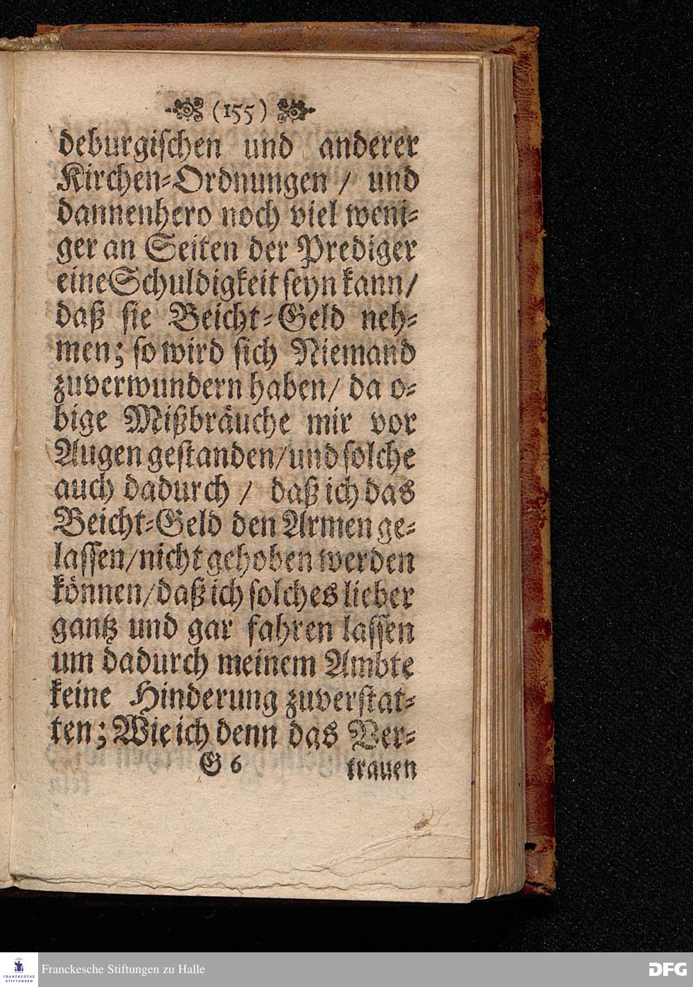 Der Unverantwortliche Mißbrauch des H.Abendmahls In der Evangel.Kirchen / In einer Predigt über I.Cor.XI, 23-33. Am Grünen Donners=Tage ANNO 1699. fürgestellet / und Zu wohlgemeinter Erweckung Der meisten Lehrer u. Zuhörer / die in solchem Mißbrauch so sicher dahin gehen / zum andern mal ans Licht gegeben von M.August Hermann Francken / SS.Theol.Gr.& OO.LL.PP.Ord.& P.Glauch. HALLE / Gedruckt bey Christian Henckeln / Univers.Buchdr. 1699.