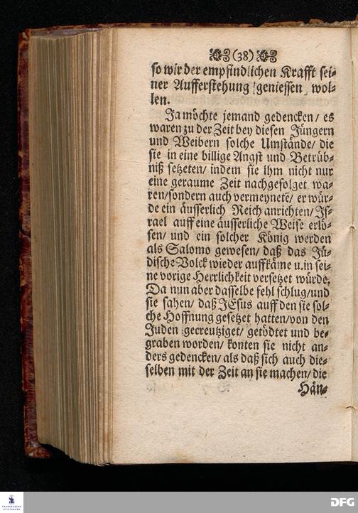 Das Lebendige Gedächtniß der Aufferstehung JESU CHristi; Am ersten Oster=Feyer=Tage über das Evangelium Marc. XVI. 1==8. In der St.Georgen=Kirche zu Glaucha an Halle MDCCI. vorgestellet / von August Hermann Francken / SS.Theol.PP.Ordin. & Past.Glauch. Halle / Druckts Joh.Grunert / U.B.