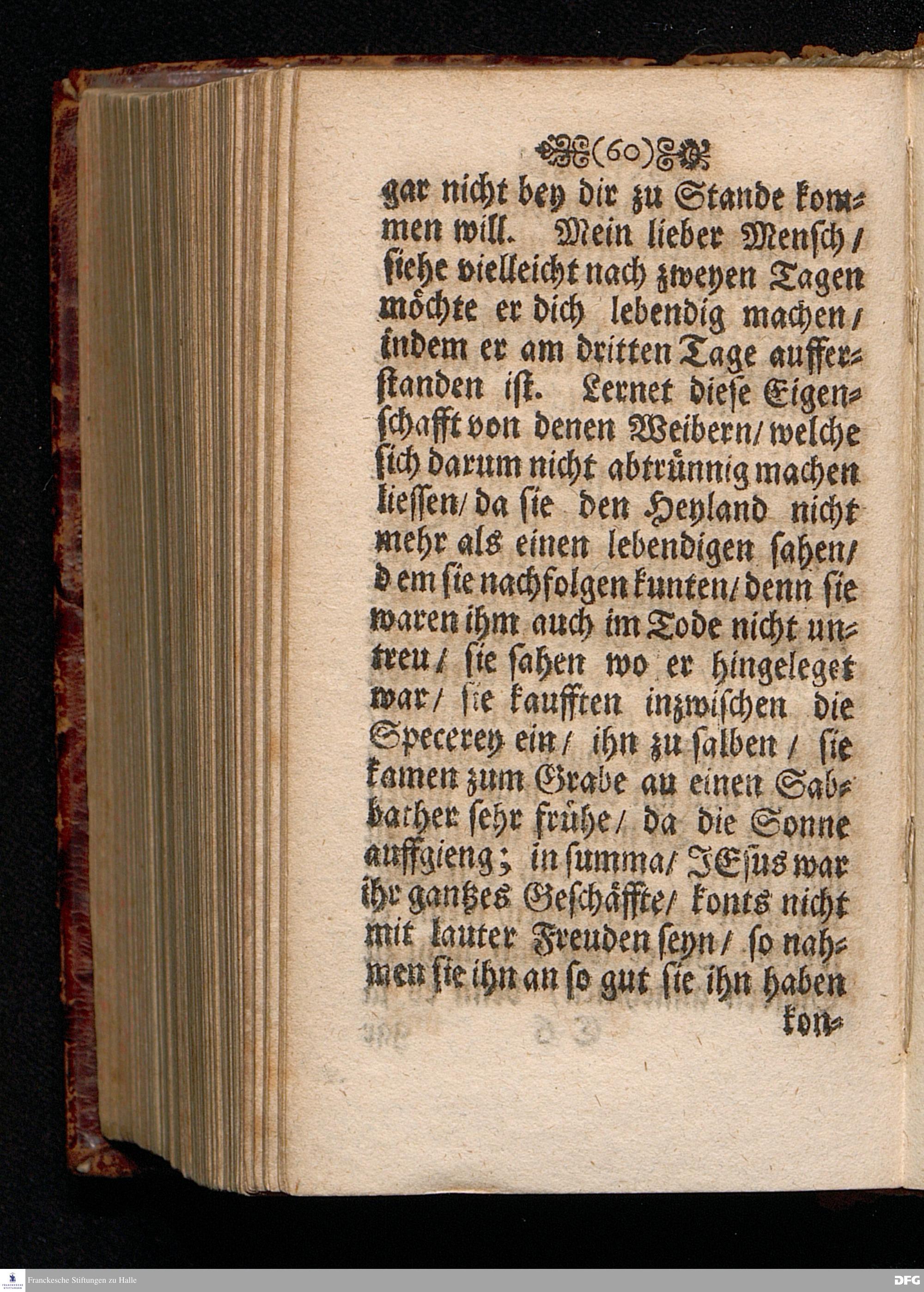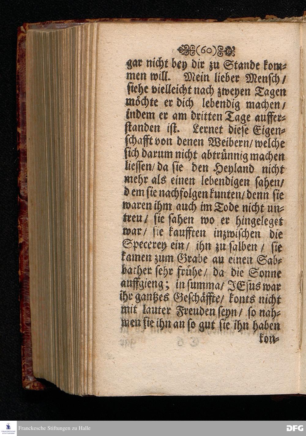 Das Lebendige Gedächtniß der Aufferstehung JESU CHristi; Am ersten Oster=Feyer=Tage über das Evangelium Marc. XVI. 1==8. In der St.Georgen=Kirche zu Glaucha an Halle MDCCI. vorgestellet / von August Hermann Francken / SS.Theol.PP.Ordin. & Past.Glauch. Halle / Druckts Joh.Grunert / U.B.