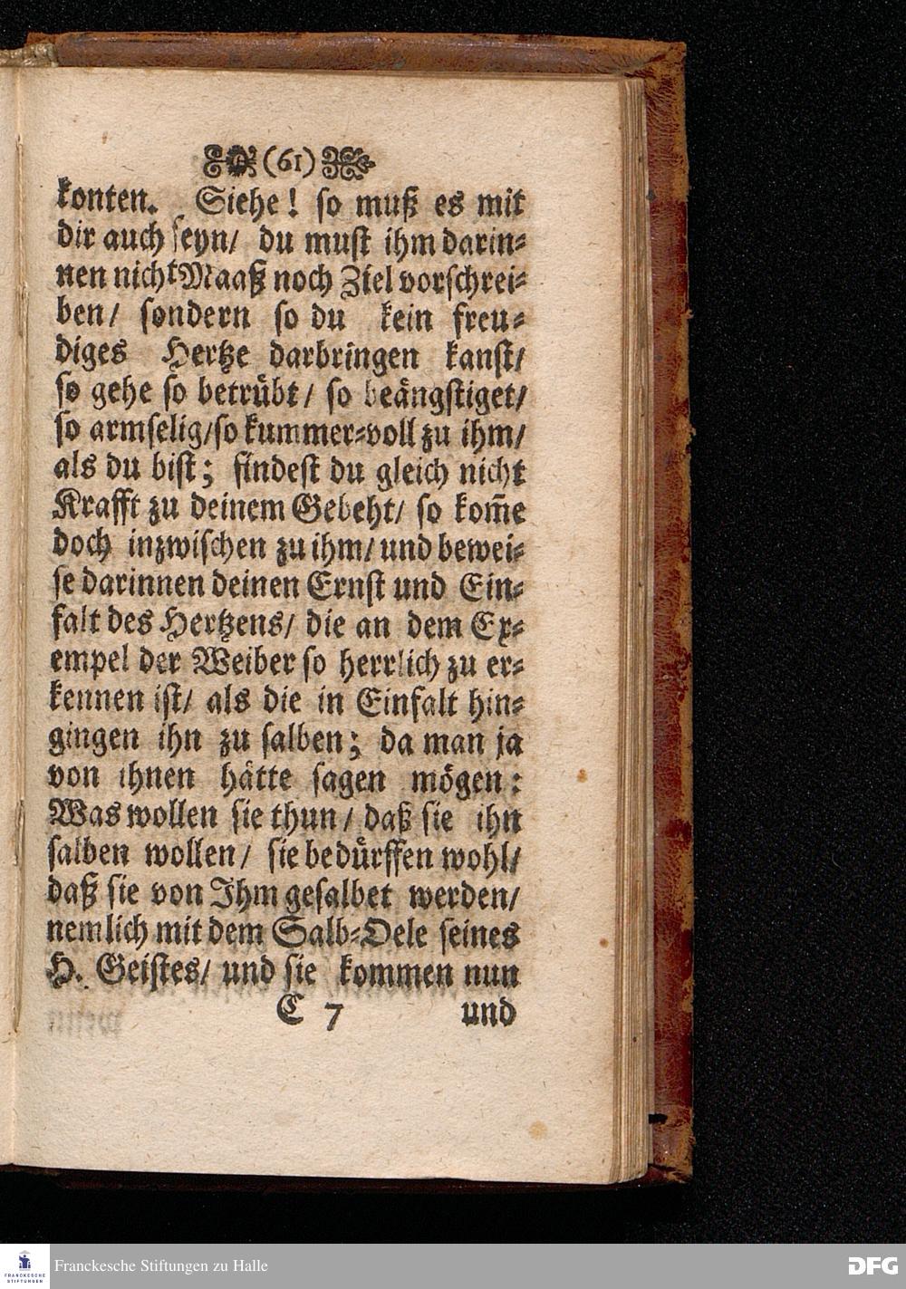 Das Lebendige Gedächtniß der Aufferstehung JESU CHristi; Am ersten Oster=Feyer=Tage über das Evangelium Marc. XVI. 1==8. In der St.Georgen=Kirche zu Glaucha an Halle MDCCI. vorgestellet / von August Hermann Francken / SS.Theol.PP.Ordin. & Past.Glauch. Halle / Druckts Joh.Grunert / U.B.