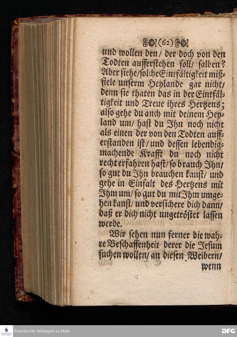 Das Lebendige Gedächtniß der Aufferstehung JESU CHristi; Am ersten Oster=Feyer=Tage über das Evangelium Marc. XVI. 1==8. In der St.Georgen=Kirche zu Glaucha an Halle MDCCI. vorgestellet / von August Hermann Francken / SS.Theol.PP.Ordin. & Past.Glauch. Halle / Druckts Joh.Grunert / U.B.