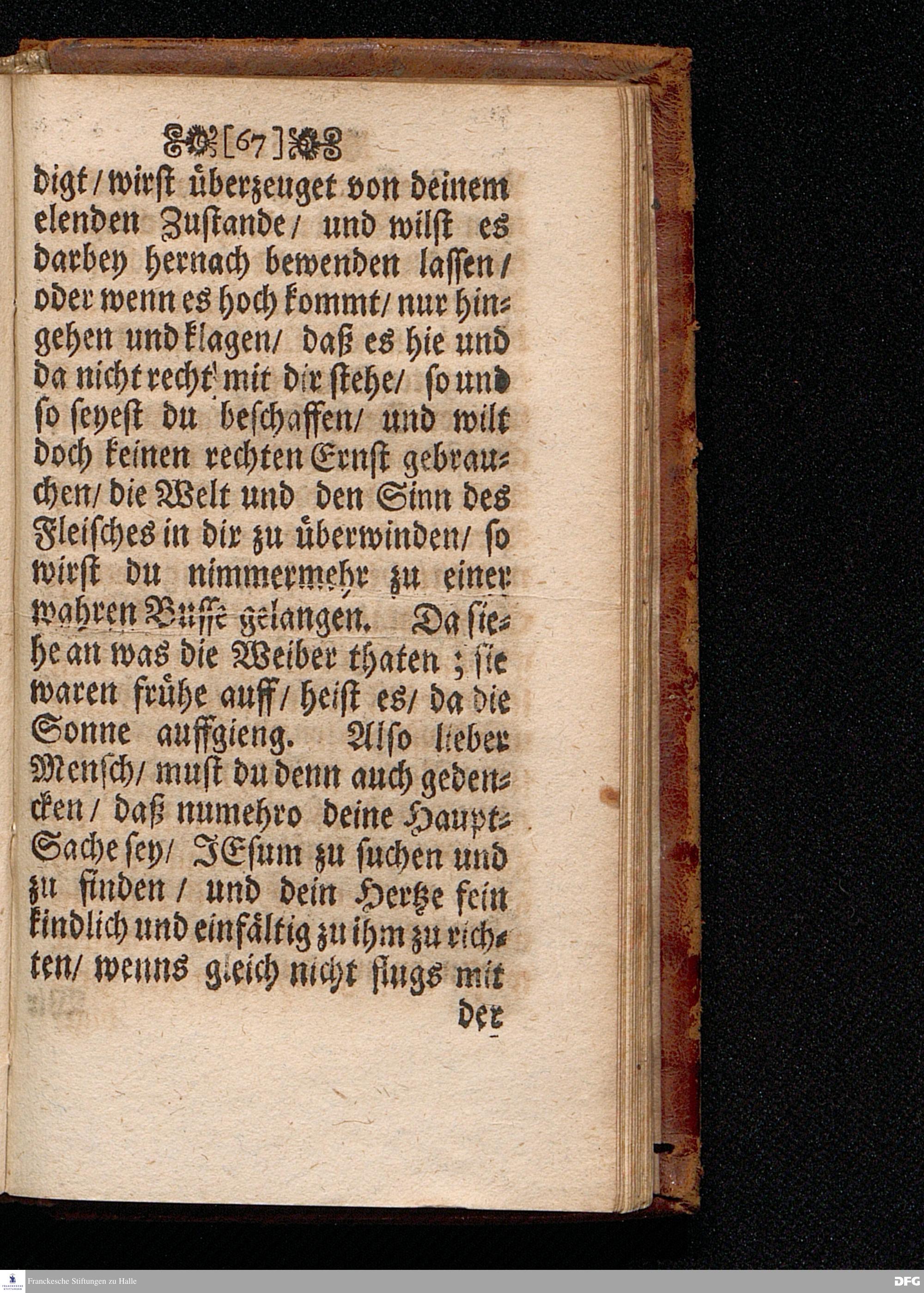 Das Lebendige Gedächtniß der Aufferstehung JESU CHristi; Am ersten Oster=Feyer=Tage über das Evangelium Marc. XVI. 1==8. In der St.Georgen=Kirche zu Glaucha an Halle MDCCI. vorgestellet / von August Hermann Francken / SS.Theol.PP.Ordin. & Past.Glauch. Halle / Druckts Joh.Grunert / U.B.