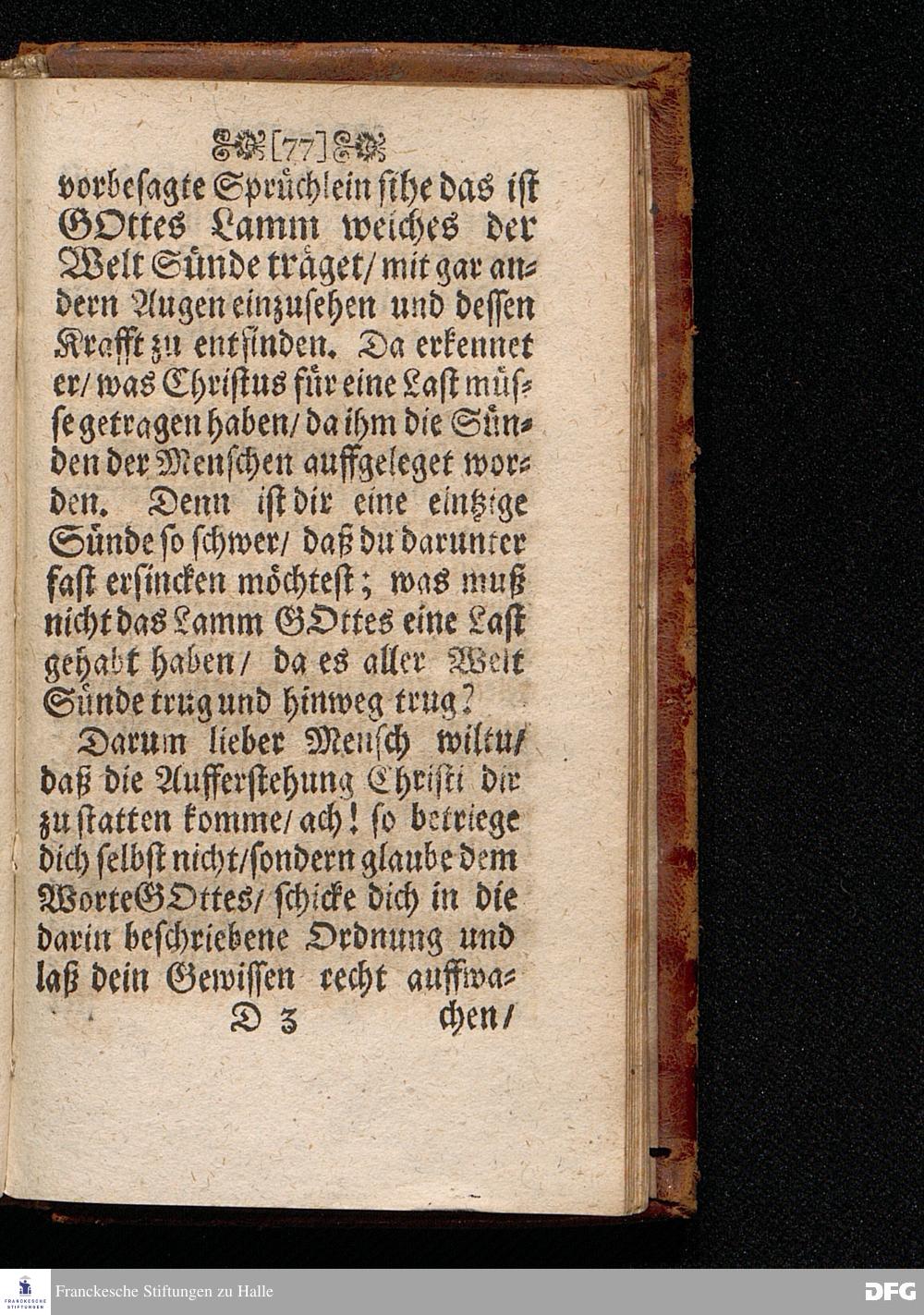 Das Lebendige Gedächtniß der Aufferstehung JESU CHristi; Am ersten Oster=Feyer=Tage über das Evangelium Marc. XVI. 1==8. In der St.Georgen=Kirche zu Glaucha an Halle MDCCI. vorgestellet / von August Hermann Francken / SS.Theol.PP.Ordin. & Past.Glauch. Halle / Druckts Joh.Grunert / U.B.