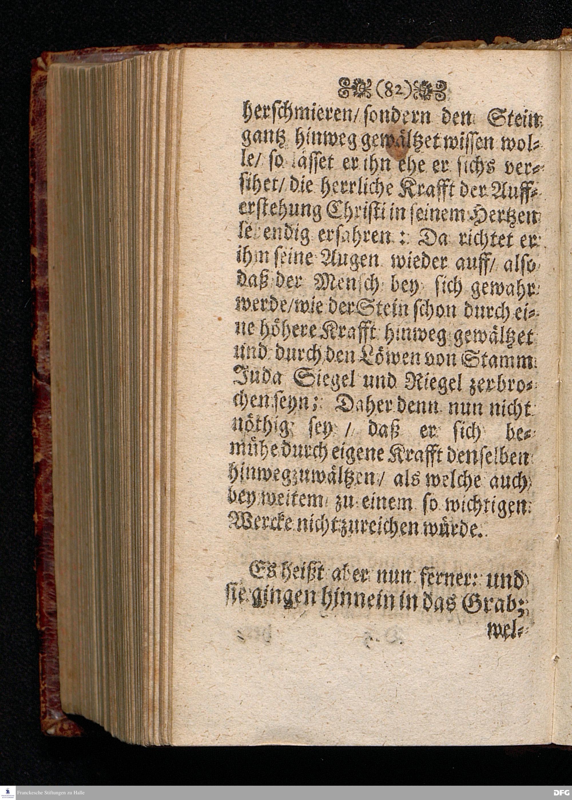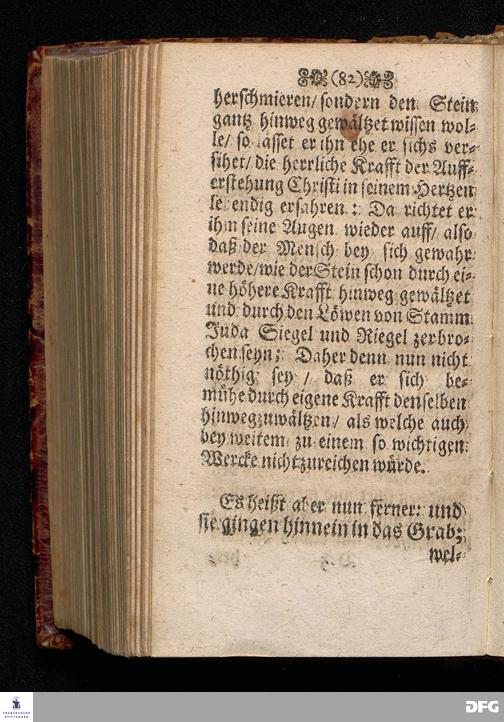 Das Lebendige Gedächtniß der Aufferstehung JESU CHristi; Am ersten Oster=Feyer=Tage über das Evangelium Marc. XVI. 1==8. In der St.Georgen=Kirche zu Glaucha an Halle MDCCI. vorgestellet / von August Hermann Francken / SS.Theol.PP.Ordin. & Past.Glauch. Halle / Druckts Joh.Grunert / U.B.