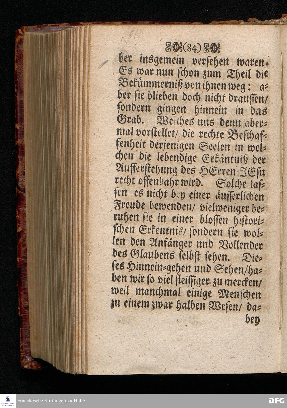 Das Lebendige Gedächtniß der Aufferstehung JESU CHristi; Am ersten Oster=Feyer=Tage über das Evangelium Marc. XVI. 1==8. In der St.Georgen=Kirche zu Glaucha an Halle MDCCI. vorgestellet / von August Hermann Francken / SS.Theol.PP.Ordin. & Past.Glauch. Halle / Druckts Joh.Grunert / U.B.