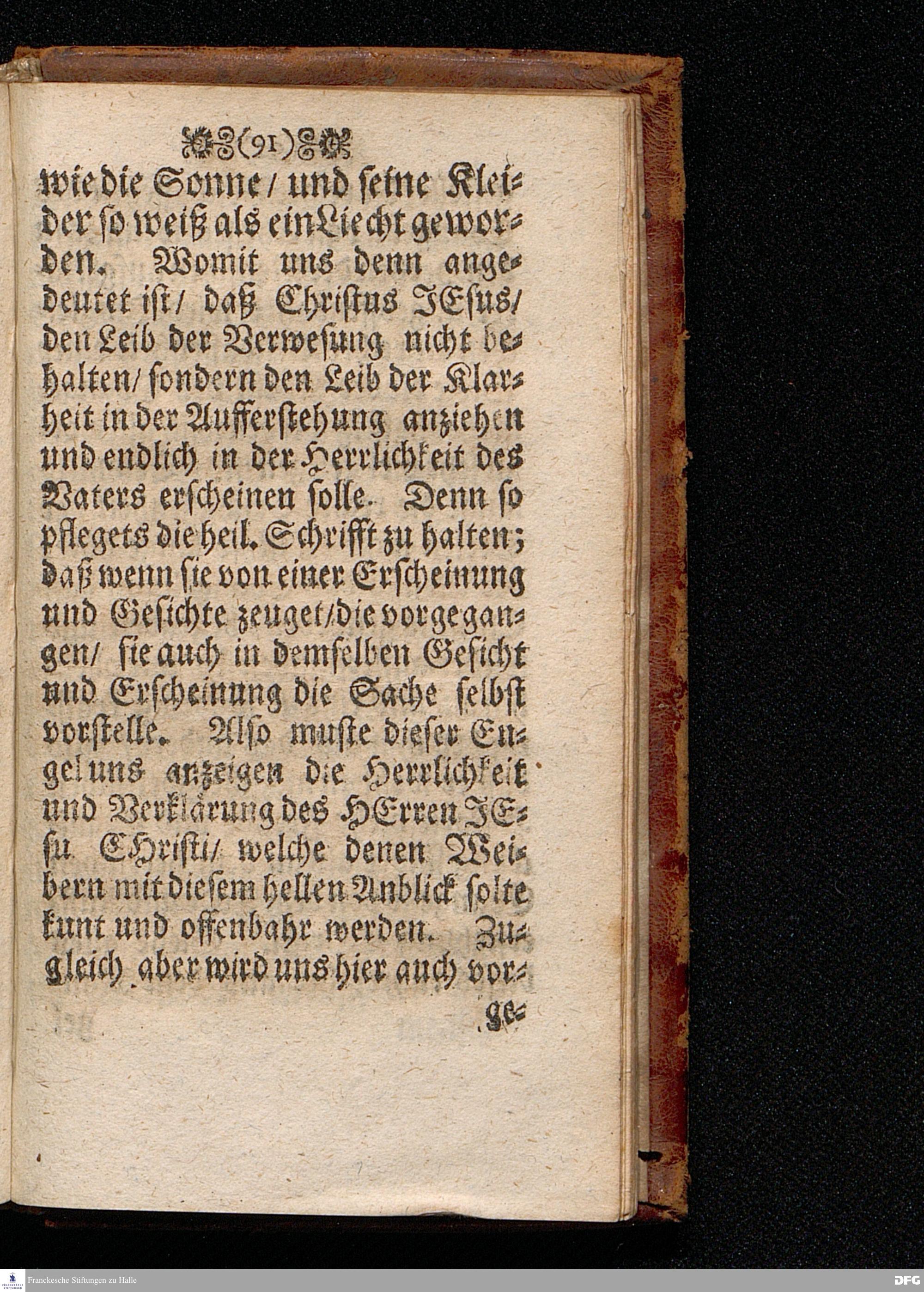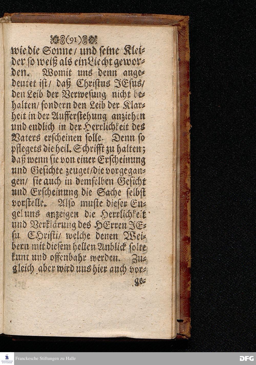 Das Lebendige Gedächtniß der Aufferstehung JESU CHristi; Am ersten Oster=Feyer=Tage über das Evangelium Marc. XVI. 1==8. In der St.Georgen=Kirche zu Glaucha an Halle MDCCI. vorgestellet / von August Hermann Francken / SS.Theol.PP.Ordin. & Past.Glauch. Halle / Druckts Joh.Grunert / U.B.