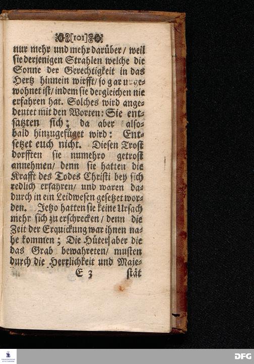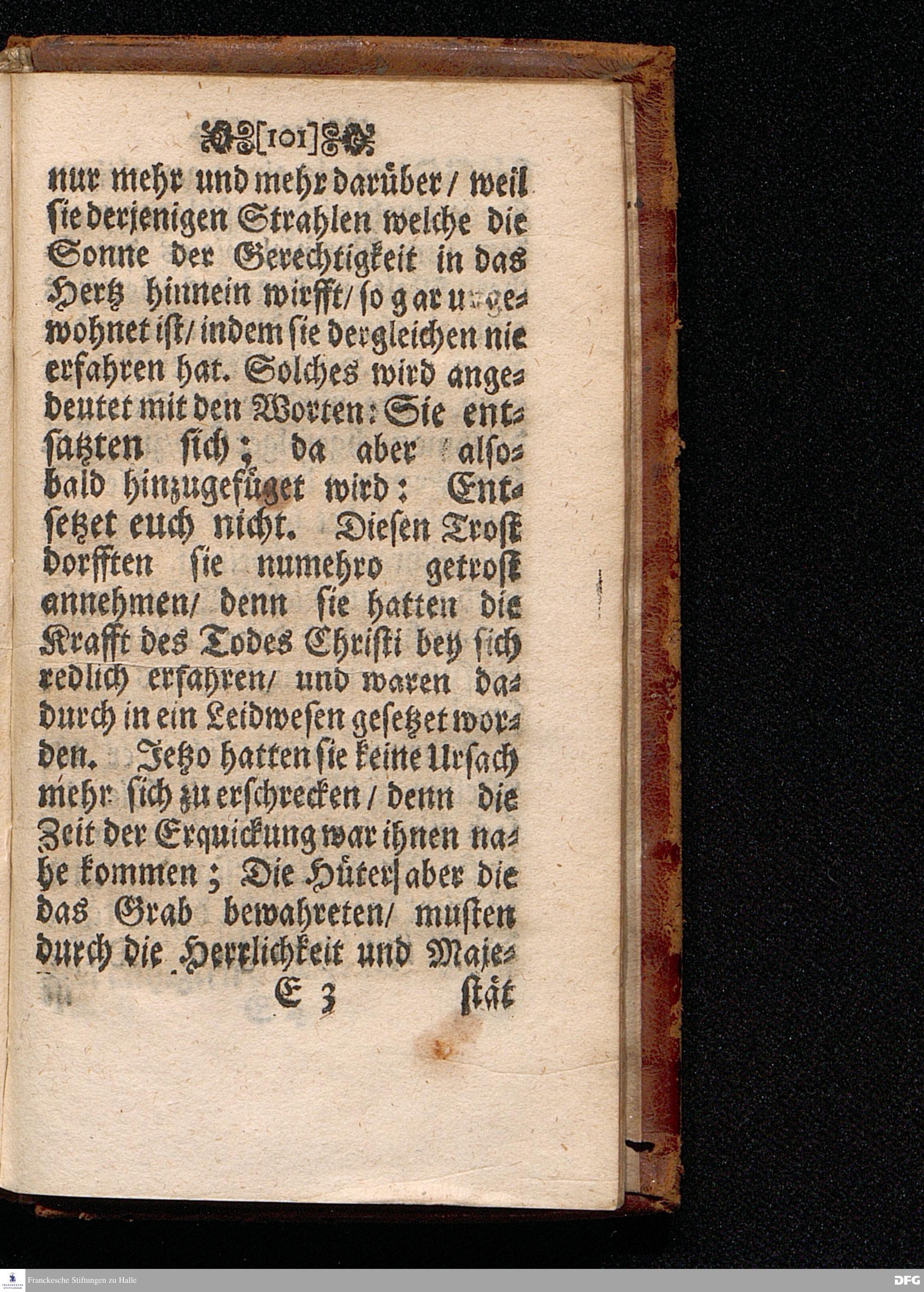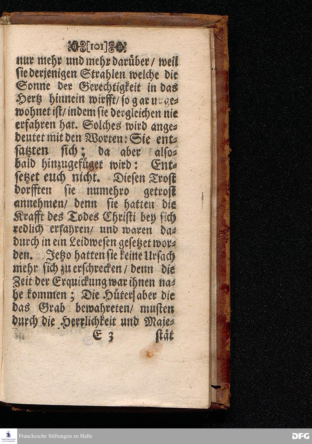 Das Lebendige Gedächtniß der Aufferstehung JESU CHristi; Am ersten Oster=Feyer=Tage über das Evangelium Marc. XVI. 1==8. In der St.Georgen=Kirche zu Glaucha an Halle MDCCI. vorgestellet / von August Hermann Francken / SS.Theol.PP.Ordin. & Past.Glauch. Halle / Druckts Joh.Grunert / U.B.