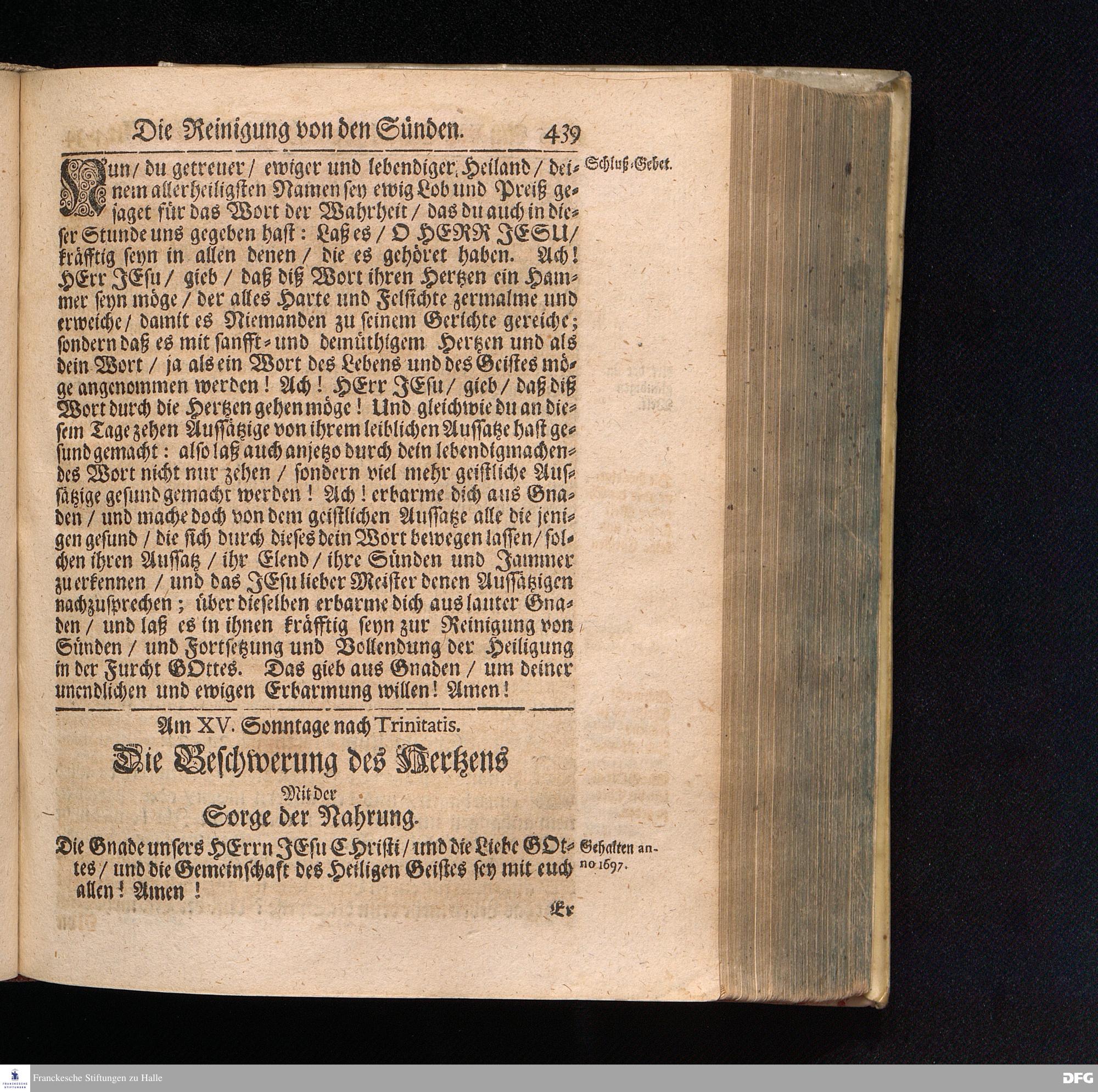 August Hermann Franckens S.Theol.Prof.und Past. Sonn= Fest= und Apostel=Tags=Predigten / Darinnen Die zum wahren Christenthum gehörige nöthigste und vornehmste Materien abgehandelt sind; Nunmehro von neuen wieder durchgesehen / und verbessert / Nebst den darzu nützlichen Registern. Die dritte Edition. HALLE / gedruckt und verlegt im Wäysenhause / MDCCIX. Mit Königl.Preuß.und Churfl.Brandenb.Privil.