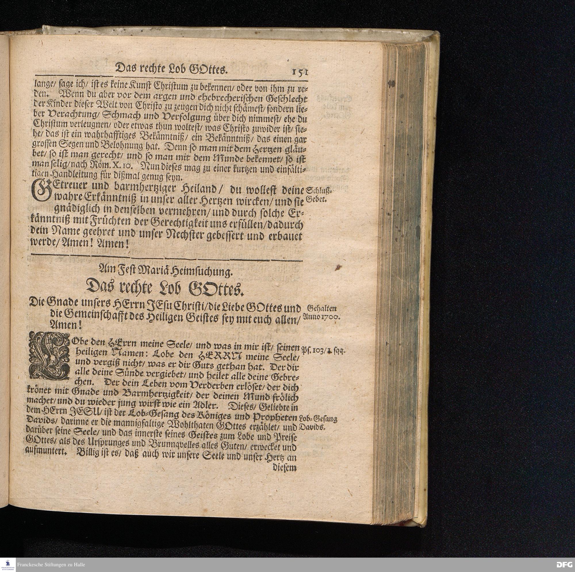 August Hermann Franckens S.Theol.Prof.und Past. Sonn= Fest= und Apostel=Tags=Predigten / Darinnen Die zum wahren Christenthum gehörige nöthigste und vornehmste Materien abgehandelt sind; Nunmehro von neuen wieder durchgesehen / und verbessert / Nebst den darzu nützlichen Registern. Die dritte Edition. HALLE / gedruckt und verlegt im Wäysenhause / MDCCIX. Mit Königl.Preuß.und Churfl.Brandenb.Privil.