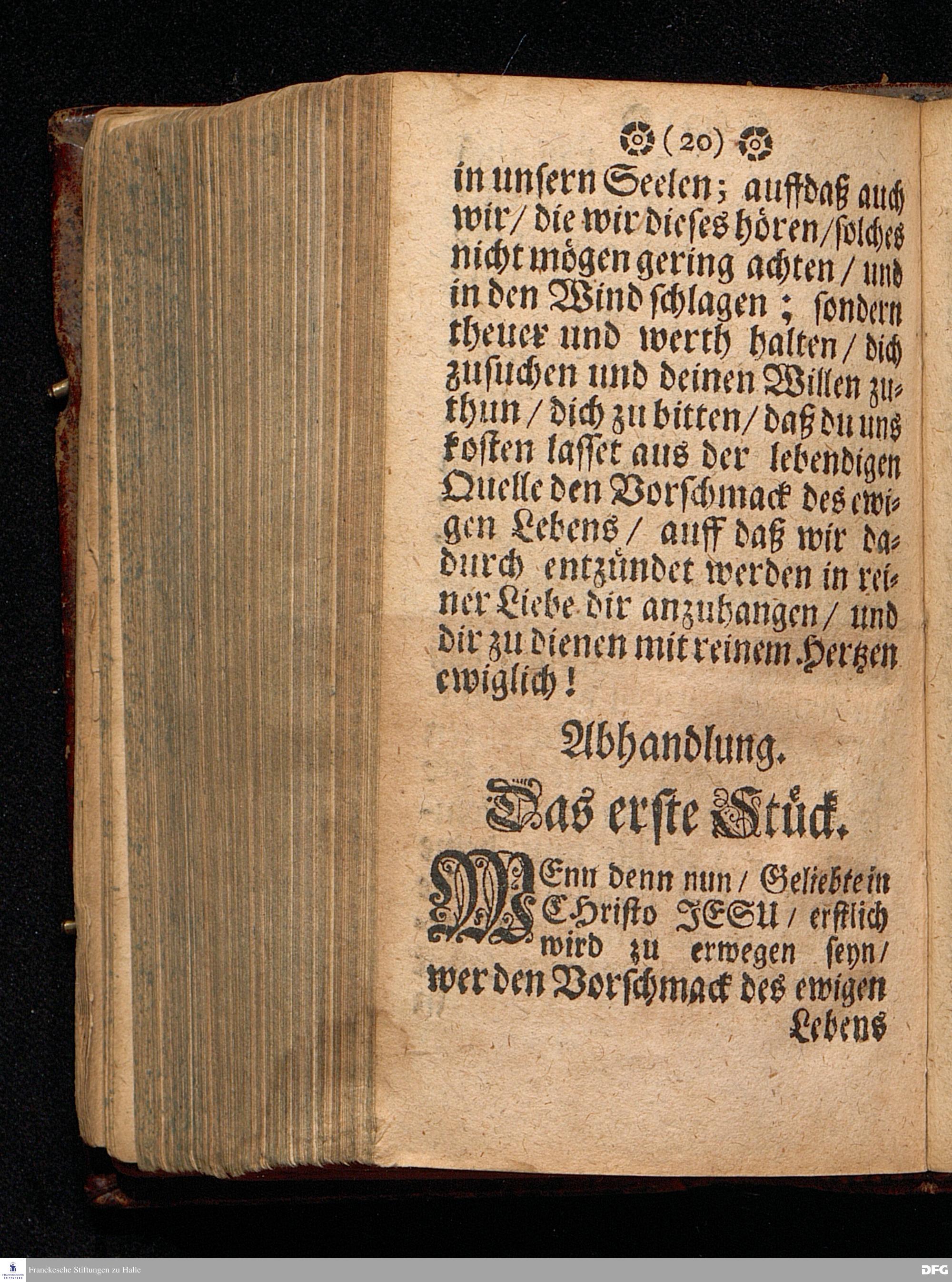Der Vorschmack des ewigen Lebens / In einer Predigt Uber das Evangelium Matth.XVII, v.1==9. am 6.Sonntag nach Epiphan. Anno 1698. In der St.Georgen=Kirche zu Glaucha an Halle vorgestellet Und nunmehro zum andern mal herausgegeben / von M.August Hermann Francken / SS.Theol.Gr.& OO.LL.P.P.Ord.& P.Glauch. HALLE / Druckts Christian Henckel / 1699.