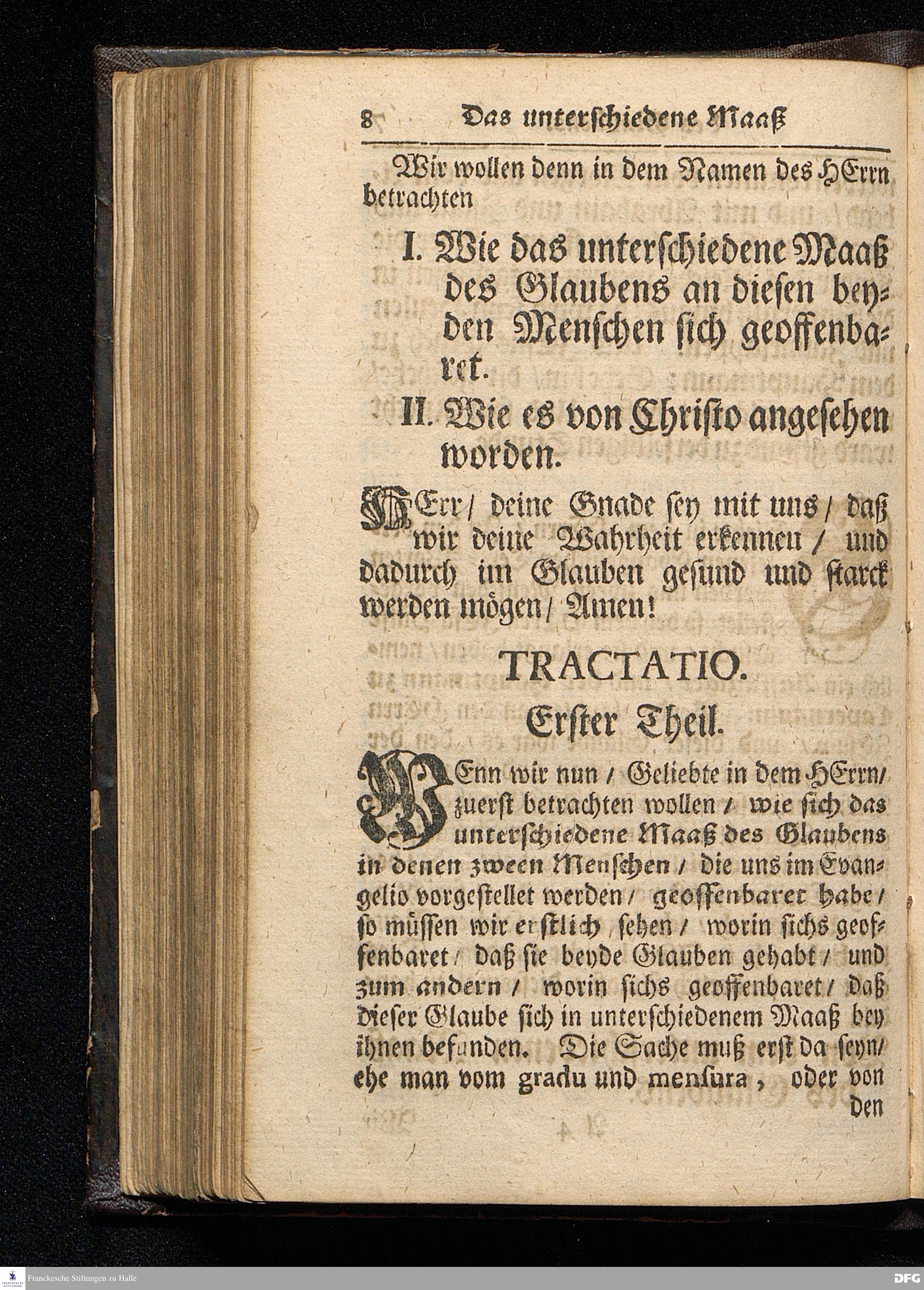 Das Unterschiedene Maaß des Glaubens / Aus dem Evangelischen Text Matth.VIII, 1--13. Am IIIten Sonntage nach Epiphanias MDCCXVI. In der St.Ulrichs=Kirchen in Halle vorgestellet von August Hermann Francken / S.Theol.Prof.& Past.zu S.Ulrich / und des Gymnasii Scholarcha. HALLE / Gedruckt und zu finden im Wäysen=Hause / 1716.