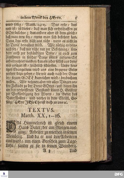 GRADUS FIDELITATIS in opere Domini, d.i. Die Stuffen der Treue In dem Werck des HErrn / Auf Septuagesima MDCCXVI. Aus Matth.XX, 1--16. In der St.Ulrichs=Kirchen in Halle vorgestellet von August Hermann Francken / S.Theol.Prof.& Past.zu S.Ulrich / und des Gymnasii Scholarcha. HALLE / Gedruckt und zu finden im Wäysen=Hause. 1716.