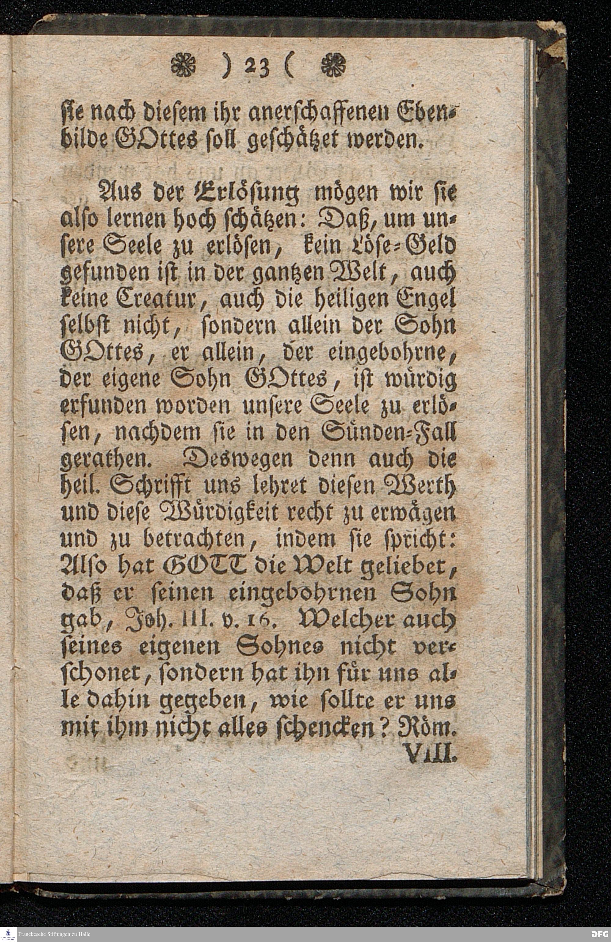 Der Hohe Werth der Seelen, In einer Buß=Predigt über Marc.8. v.36. Am 5.Junii 1709. In der St.Georgen=Kirche zu Glaucha an Halle vorgestellet, Von August Herm. Francken, SS.Theol.Prof.und Past.zu St.Ulrich, und des hiesigen Gymnasii Schol. HALLE, In Verlegung des Waysenhauses. 1753.