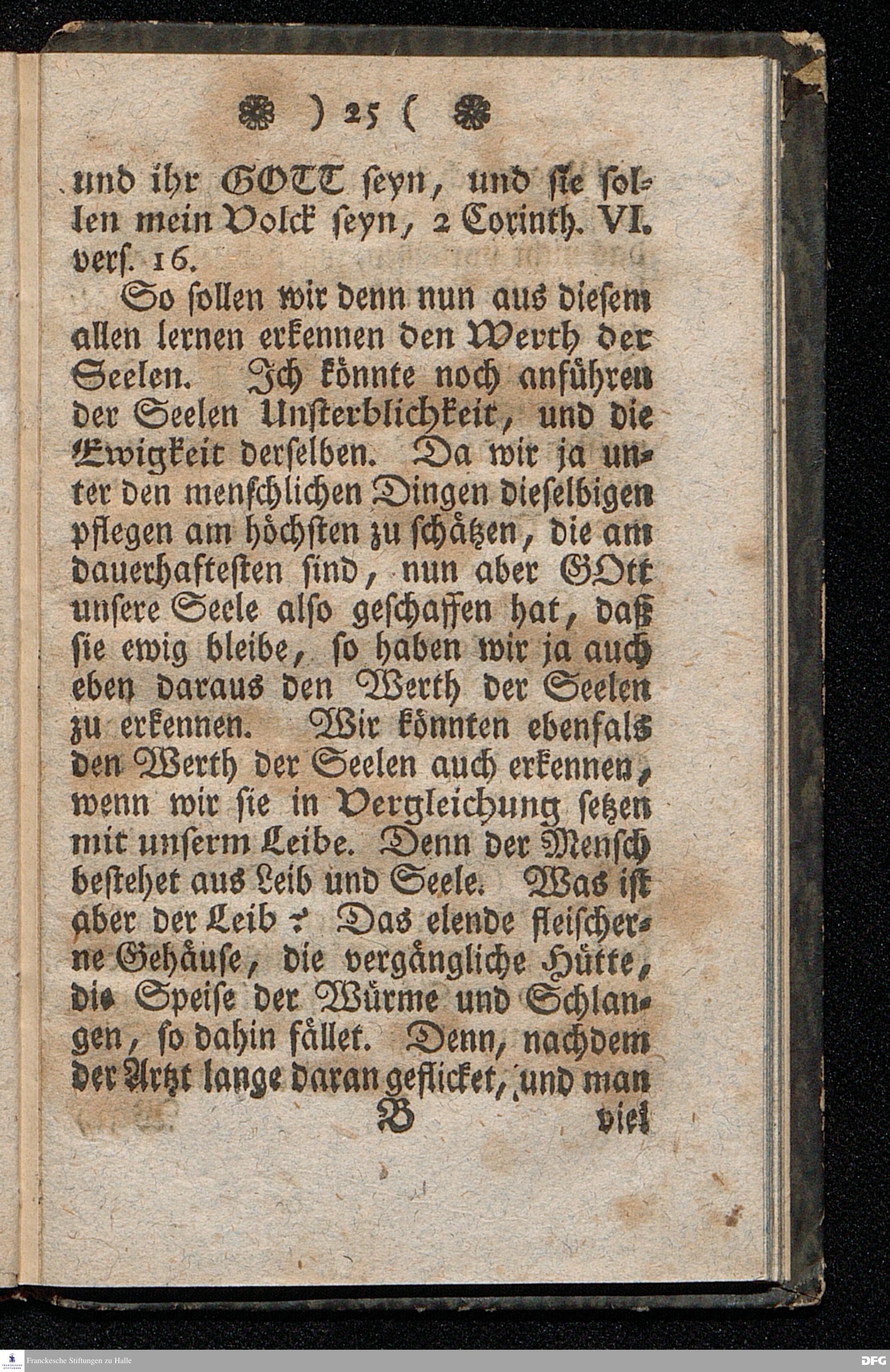 Der Hohe Werth der Seelen, In einer Buß=Predigt über Marc.8. v.36. Am 5.Junii 1709. In der St.Georgen=Kirche zu Glaucha an Halle vorgestellet, Von August Herm. Francken, SS.Theol.Prof.und Past.zu St.Ulrich, und des hiesigen Gymnasii Schol. HALLE, In Verlegung des Waysenhauses. 1753.