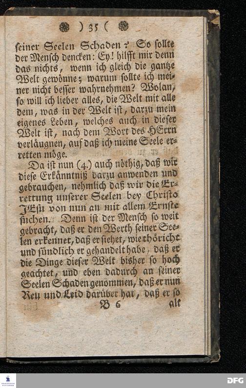 Der Hohe Werth der Seelen, In einer Buß=Predigt über Marc.8. v.36. Am 5.Junii 1709. In der St.Georgen=Kirche zu Glaucha an Halle vorgestellet, Von August Herm. Francken, SS.Theol.Prof.und Past.zu St.Ulrich, und des hiesigen Gymnasii Schol. HALLE, In Verlegung des Waysenhauses. 1753.