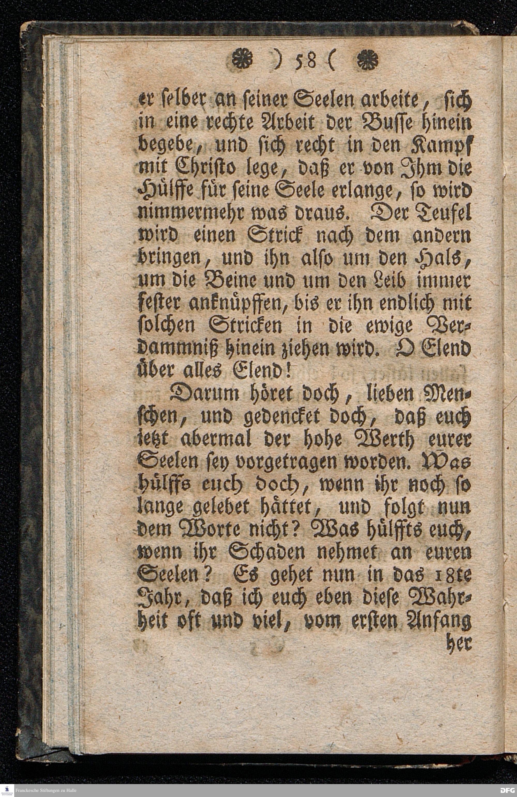 Der Hohe Werth der Seelen, In einer Buß=Predigt über Marc.8. v.36. Am 5.Junii 1709. In der St.Georgen=Kirche zu Glaucha an Halle vorgestellet, Von August Herm. Francken, SS.Theol.Prof.und Past.zu St.Ulrich, und des hiesigen Gymnasii Schol. HALLE, In Verlegung des Waysenhauses. 1753.