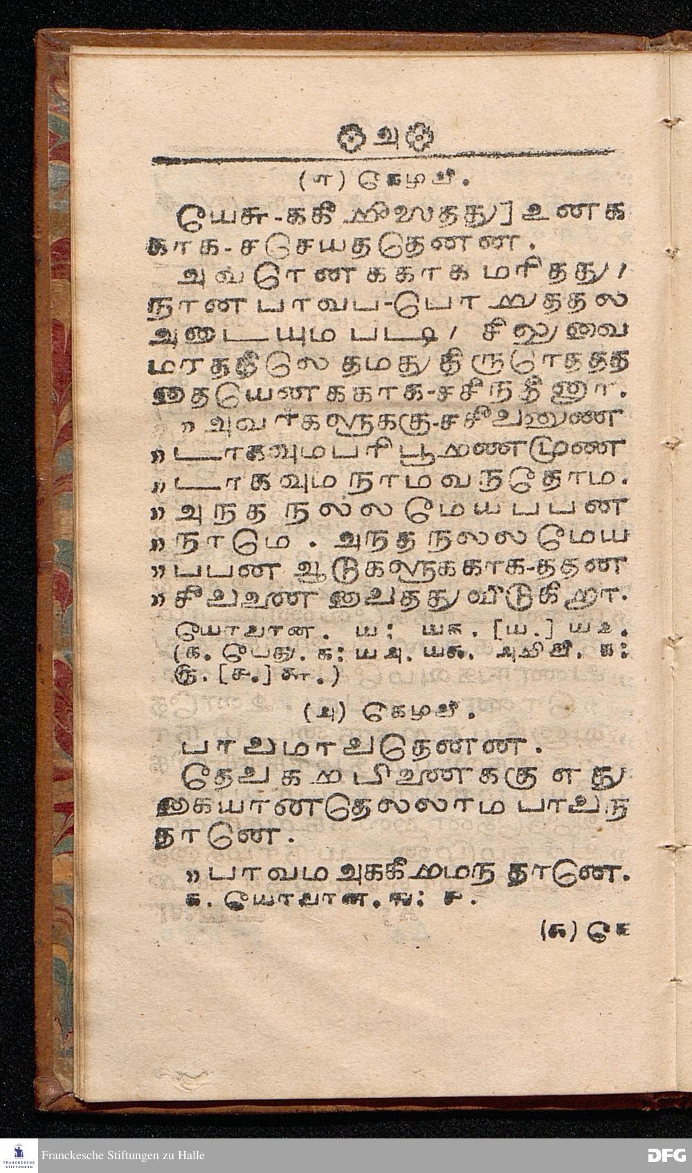 DOCTRINAE CHRISTIANAE RUDIMENTA OLIM AB AUTORE BEATO A. H. FRANCKIO Theologo Halensi GERMANICE EDITA: NUNC IN LINGUAM TAMULICAM TRANSLATA. Accessit brevis notitia de S. Scriptira & religione. [Bibelzitat] TRANGAMBARIAE, TYPIS MISSIONIS DANICAE, MDCCXXXIV