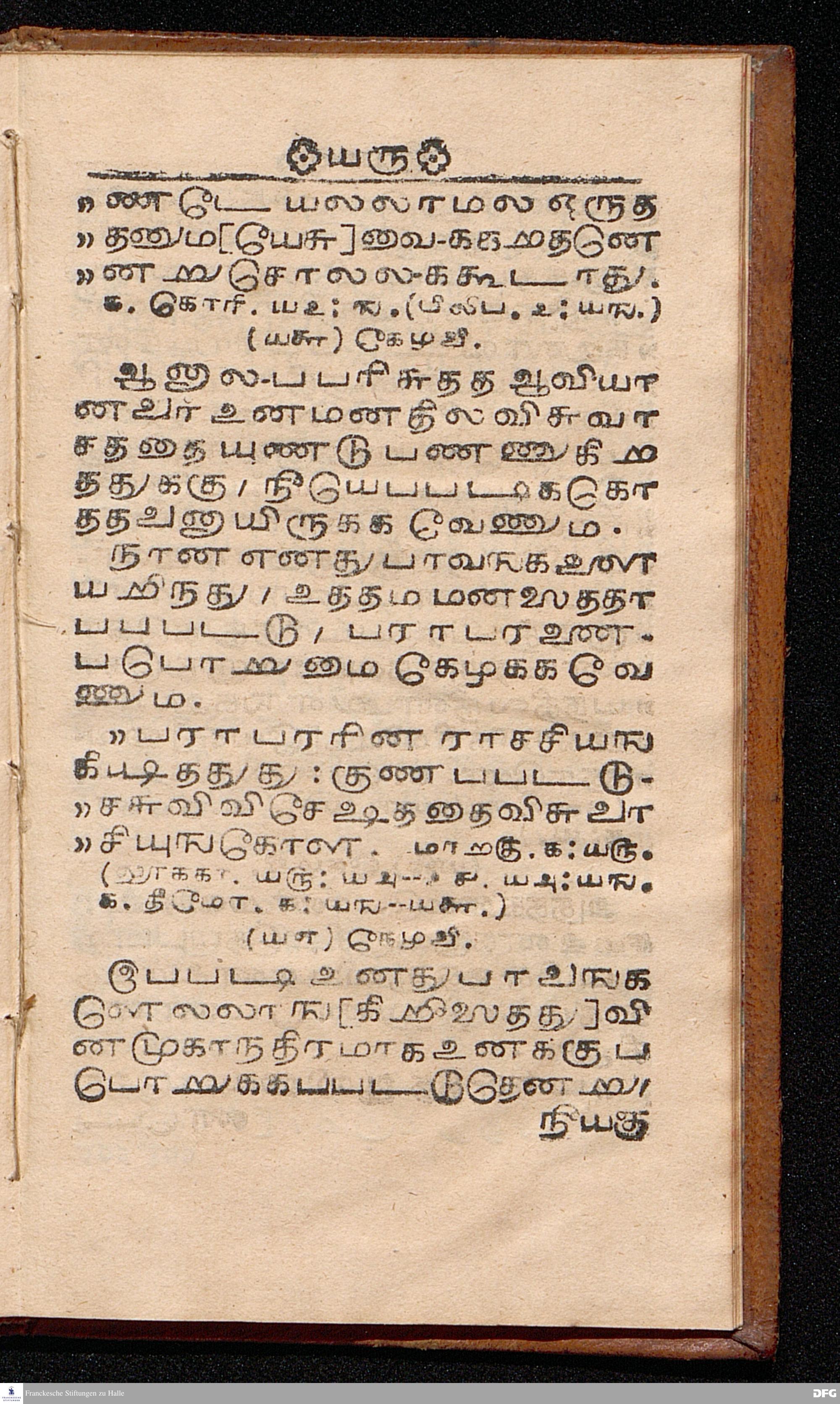 DOCTRINAE CHRISTIANAE RUDIMENTA OLIM AB AUTORE BEATO A. H. FRANCKIO Theologo Halensi GERMANICE EDITA: NUNC IN LINGUAM TAMULICAM TRANSLATA. Accessit brevis notitia de S. Scriptira & religione. [Bibelzitat] TRANGAMBARIAE, TYPIS MISSIONIS DANICAE, MDCCXXXIV