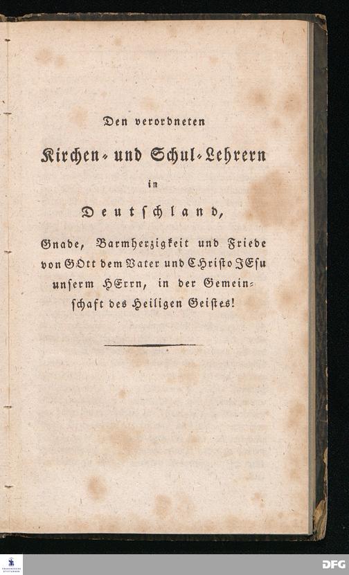Nicodemus. Ein Tractat über die Menschenfurcht, zur Pflanzung der wahren Furcht Gottes allen Christen besonders aber den Kirchen= und Schul=Lehrern gewidmet von August Hermann Franke[!], weiland Professor der Theologie und Oberprediger zu St.Ulrich, Stifter und Director des Königl.Pädagogiums und Waisenhauses und sämmtlicher damit verbundenen Institute. Sechste Auflage. Halle, in der Buchhandlung des Waisenhauses. 1826.