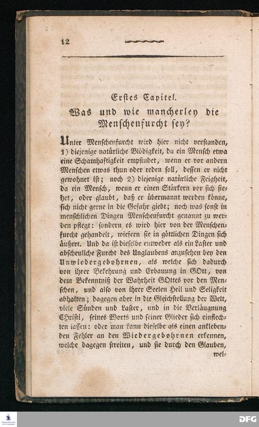 Nicodemus. Ein Tractat über die Menschenfurcht, zur Pflanzung der wahren Furcht Gottes allen Christen besonders aber den Kirchen= und Schul=Lehrern gewidmet von August Hermann Franke[!], weiland Professor der Theologie und Oberprediger zu St.Ulrich, Stifter und Director des Königl.Pädagogiums und Waisenhauses und sämmtlicher damit verbundenen Institute. Sechste Auflage. Halle, in der Buchhandlung des Waisenhauses. 1826.