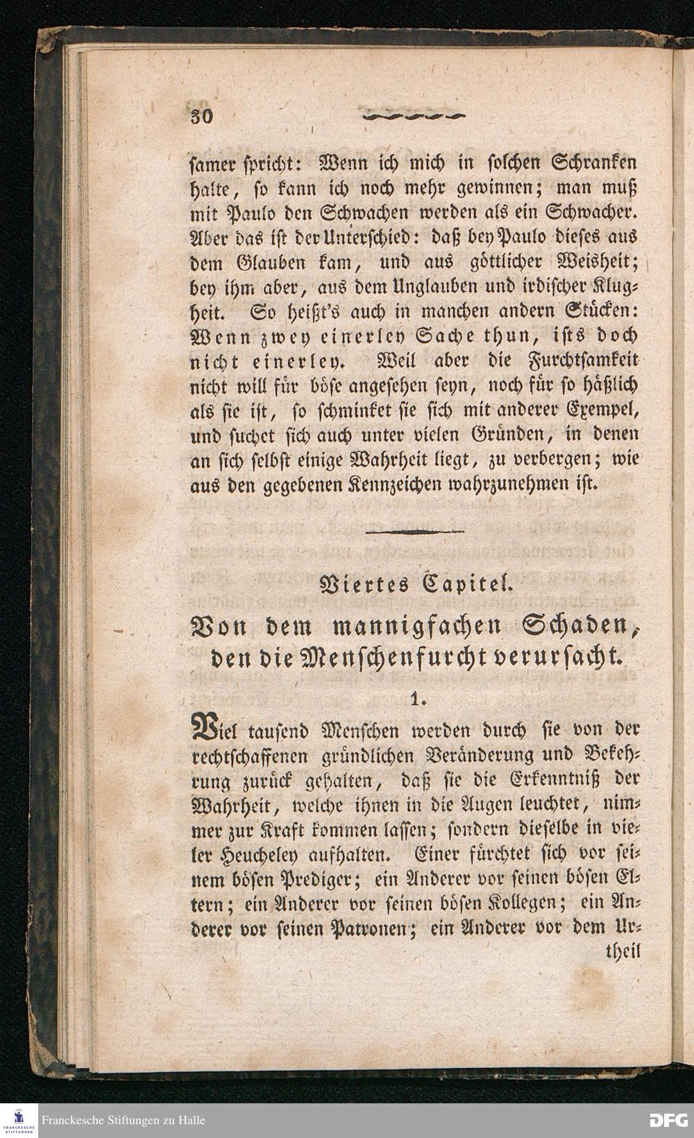 Nicodemus. Ein Tractat über die Menschenfurcht, zur Pflanzung der wahren Furcht Gottes allen Christen besonders aber den Kirchen= und Schul=Lehrern gewidmet von August Hermann Franke[!], weiland Professor der Theologie und Oberprediger zu St.Ulrich, Stifter und Director des Königl.Pädagogiums und Waisenhauses und sämmtlicher damit verbundenen Institute. Sechste Auflage. Halle, in der Buchhandlung des Waisenhauses. 1826.