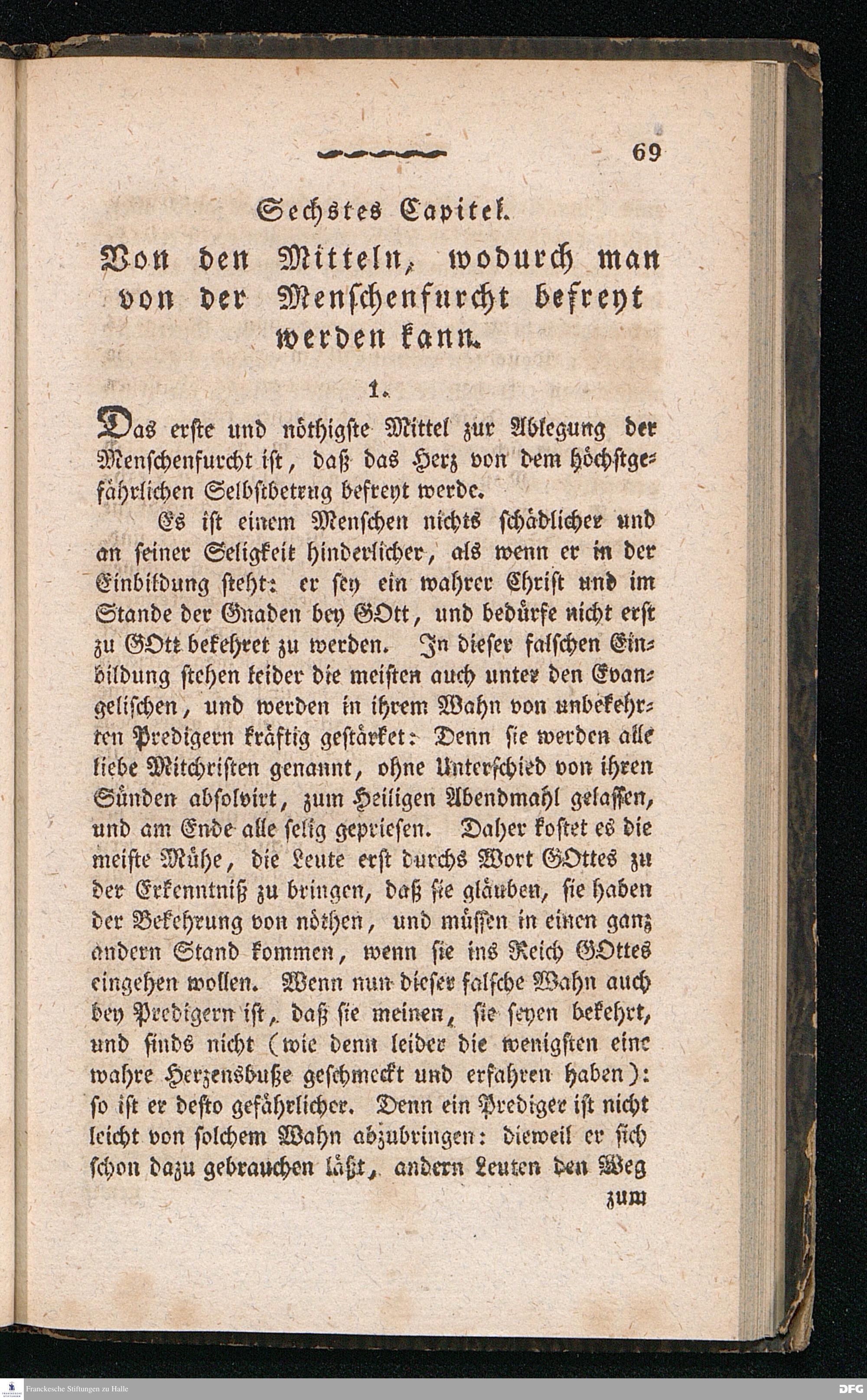 Nicodemus. Ein Tractat über die Menschenfurcht, zur Pflanzung der wahren Furcht Gottes allen Christen besonders aber den Kirchen= und Schul=Lehrern gewidmet von August Hermann Franke[!], weiland Professor der Theologie und Oberprediger zu St.Ulrich, Stifter und Director des Königl.Pädagogiums und Waisenhauses und sämmtlicher damit verbundenen Institute. Sechste Auflage. Halle, in der Buchhandlung des Waisenhauses. 1826.