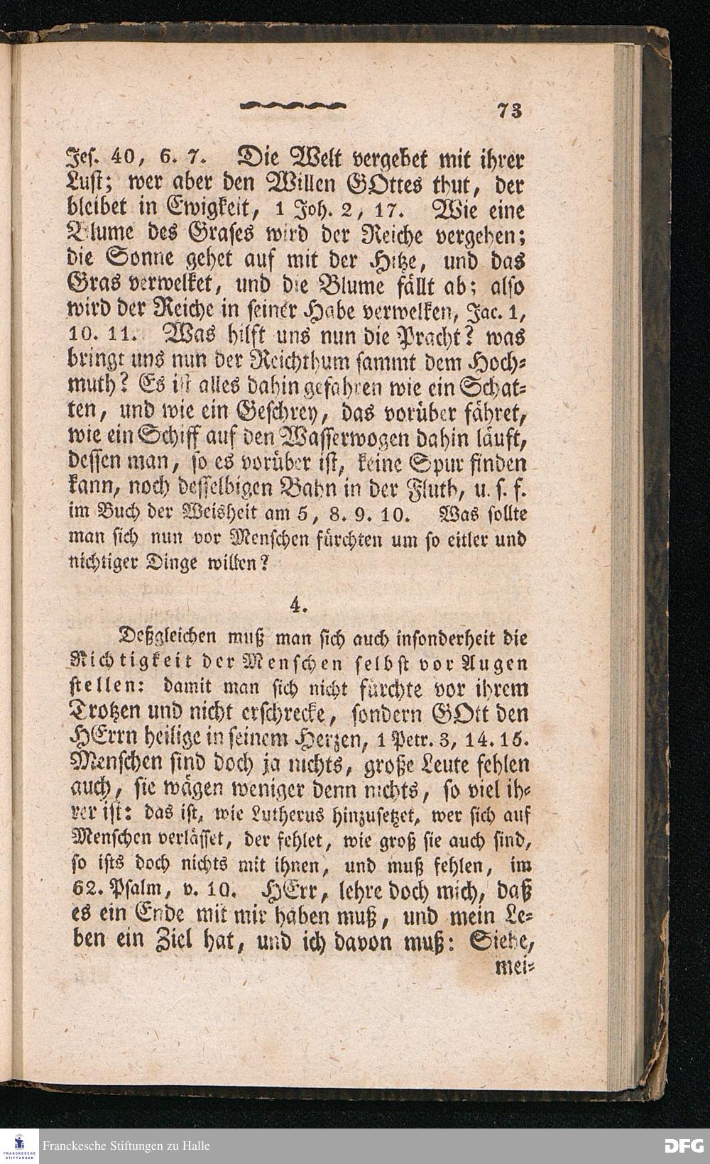 Nicodemus. Ein Tractat über die Menschenfurcht, zur Pflanzung der wahren Furcht Gottes allen Christen besonders aber den Kirchen= und Schul=Lehrern gewidmet von August Hermann Franke[!], weiland Professor der Theologie und Oberprediger zu St.Ulrich, Stifter und Director des Königl.Pädagogiums und Waisenhauses und sämmtlicher damit verbundenen Institute. Sechste Auflage. Halle, in der Buchhandlung des Waisenhauses. 1826.