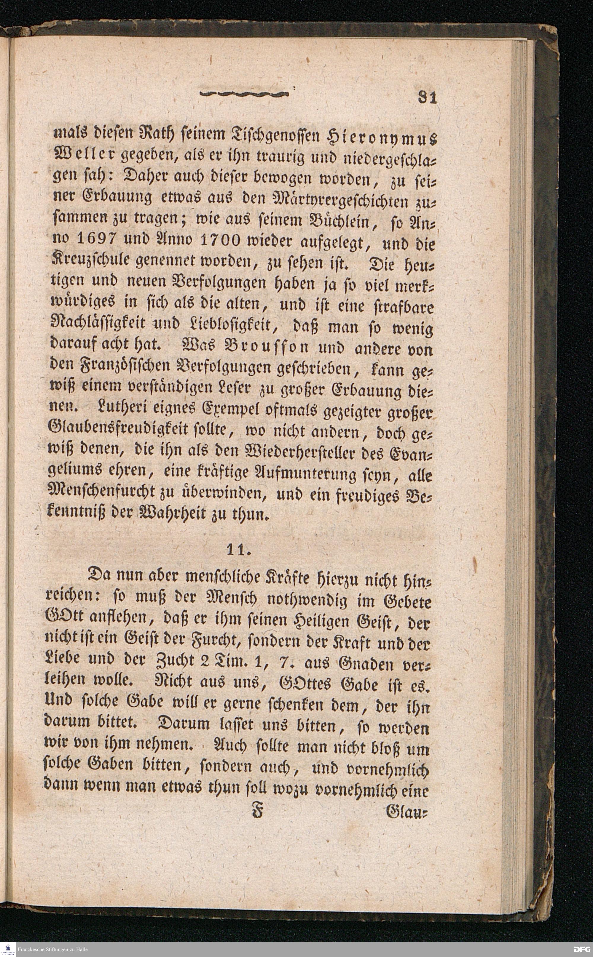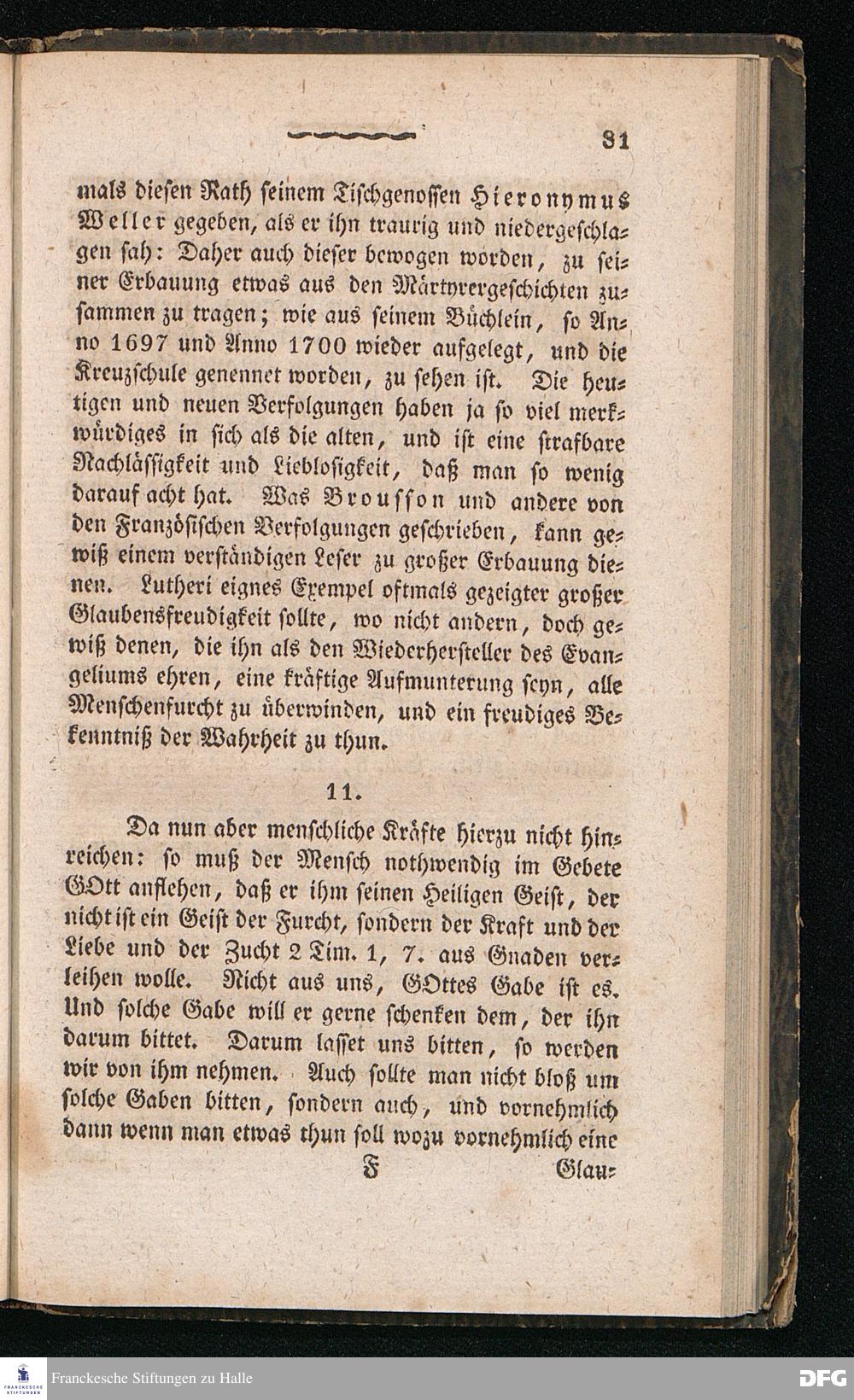 Nicodemus. Ein Tractat über die Menschenfurcht, zur Pflanzung der wahren Furcht Gottes allen Christen besonders aber den Kirchen= und Schul=Lehrern gewidmet von August Hermann Franke[!], weiland Professor der Theologie und Oberprediger zu St.Ulrich, Stifter und Director des Königl.Pädagogiums und Waisenhauses und sämmtlicher damit verbundenen Institute. Sechste Auflage. Halle, in der Buchhandlung des Waisenhauses. 1826.