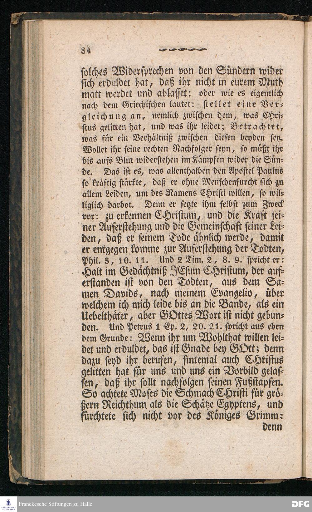 Nicodemus. Ein Tractat über die Menschenfurcht, zur Pflanzung der wahren Furcht Gottes allen Christen besonders aber den Kirchen= und Schul=Lehrern gewidmet von August Hermann Franke[!], weiland Professor der Theologie und Oberprediger zu St.Ulrich, Stifter und Director des Königl.Pädagogiums und Waisenhauses und sämmtlicher damit verbundenen Institute. Sechste Auflage. Halle, in der Buchhandlung des Waisenhauses. 1826.