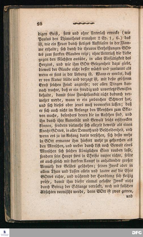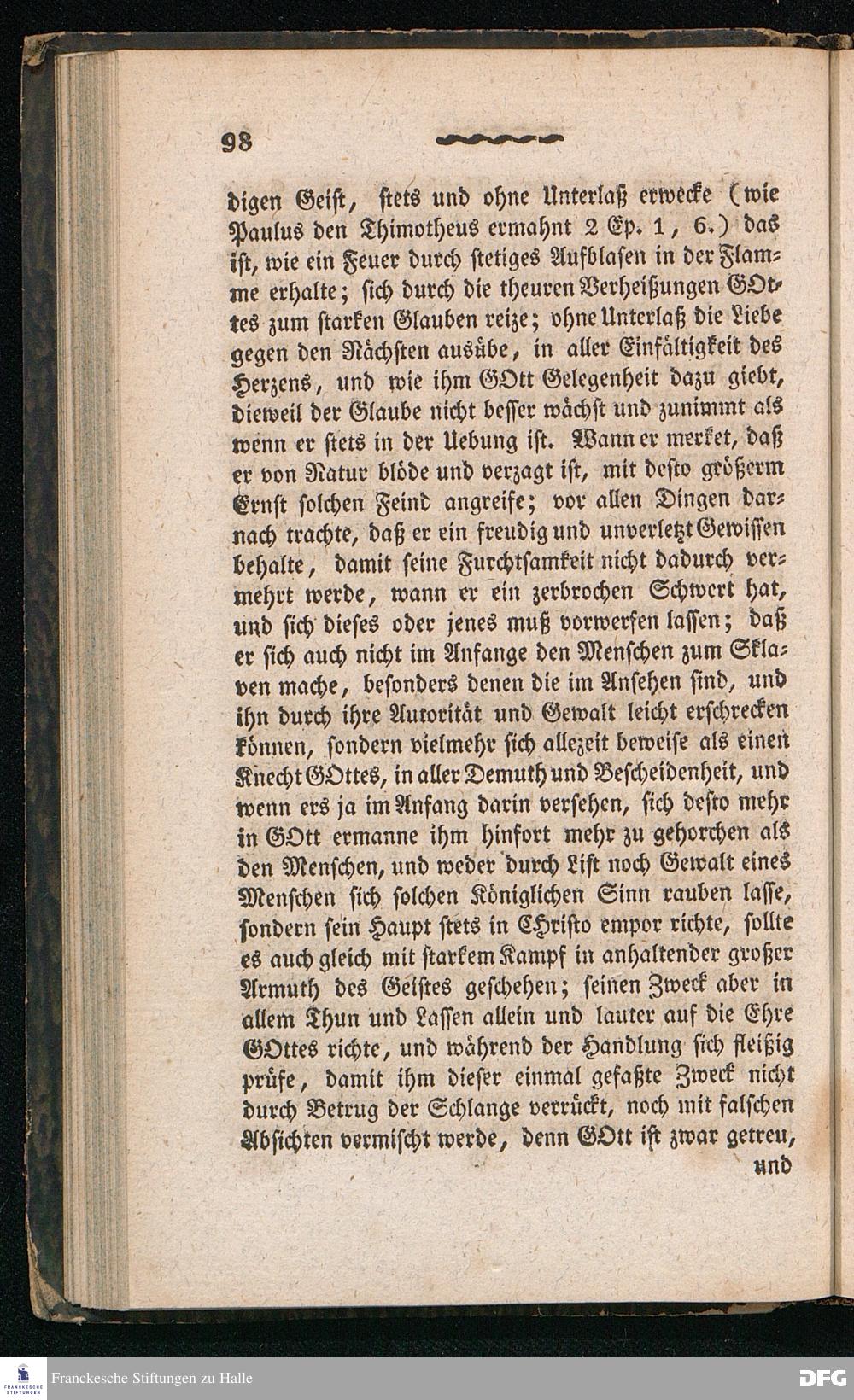 Nicodemus. Ein Tractat über die Menschenfurcht, zur Pflanzung der wahren Furcht Gottes allen Christen besonders aber den Kirchen= und Schul=Lehrern gewidmet von August Hermann Franke[!], weiland Professor der Theologie und Oberprediger zu St.Ulrich, Stifter und Director des Königl.Pädagogiums und Waisenhauses und sämmtlicher damit verbundenen Institute. Sechste Auflage. Halle, in der Buchhandlung des Waisenhauses. 1826.