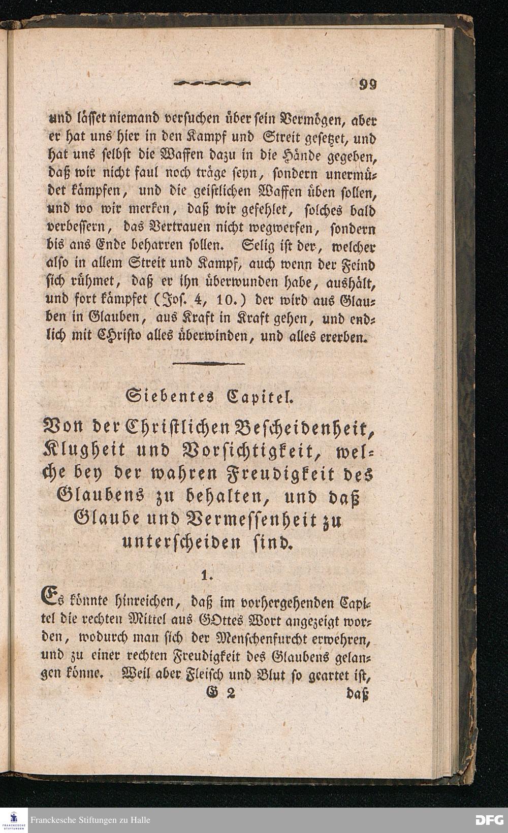 Nicodemus. Ein Tractat über die Menschenfurcht, zur Pflanzung der wahren Furcht Gottes allen Christen besonders aber den Kirchen= und Schul=Lehrern gewidmet von August Hermann Franke[!], weiland Professor der Theologie und Oberprediger zu St.Ulrich, Stifter und Director des Königl.Pädagogiums und Waisenhauses und sämmtlicher damit verbundenen Institute. Sechste Auflage. Halle, in der Buchhandlung des Waisenhauses. 1826.