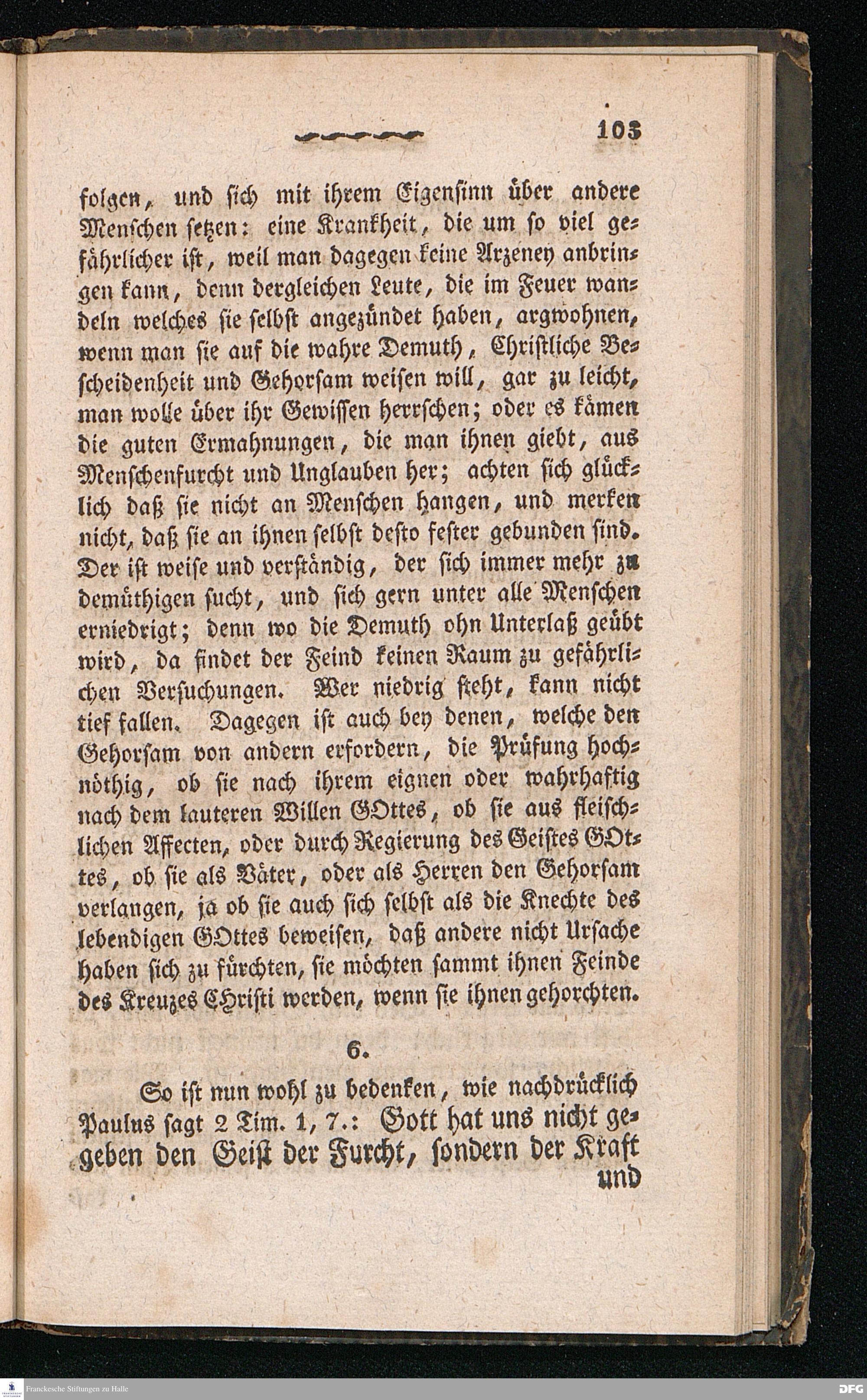 Nicodemus. Ein Tractat über die Menschenfurcht, zur Pflanzung der wahren Furcht Gottes allen Christen besonders aber den Kirchen= und Schul=Lehrern gewidmet von August Hermann Franke[!], weiland Professor der Theologie und Oberprediger zu St.Ulrich, Stifter und Director des Königl.Pädagogiums und Waisenhauses und sämmtlicher damit verbundenen Institute. Sechste Auflage. Halle, in der Buchhandlung des Waisenhauses. 1826.