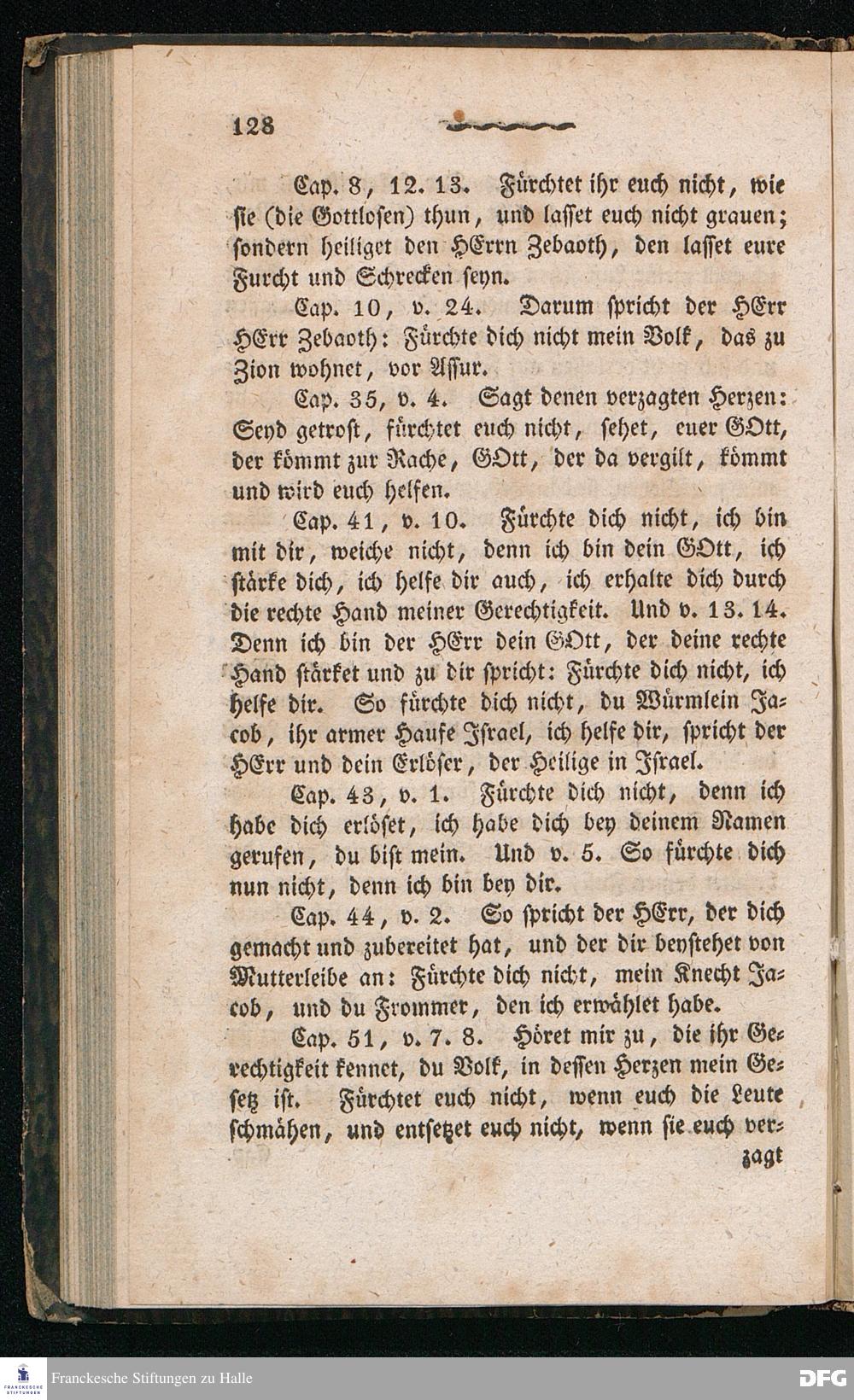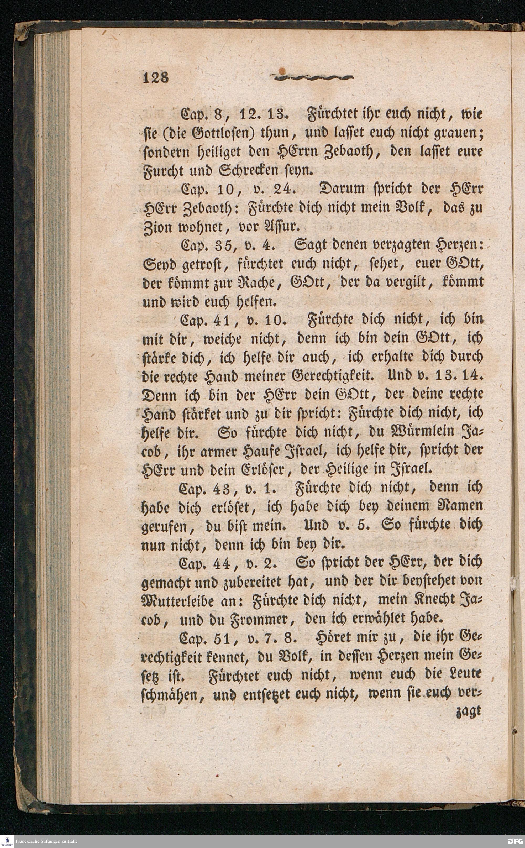 Nicodemus. Ein Tractat über die Menschenfurcht, zur Pflanzung der wahren Furcht Gottes allen Christen besonders aber den Kirchen= und Schul=Lehrern gewidmet von August Hermann Franke[!], weiland Professor der Theologie und Oberprediger zu St.Ulrich, Stifter und Director des Königl.Pädagogiums und Waisenhauses und sämmtlicher damit verbundenen Institute. Sechste Auflage. Halle, in der Buchhandlung des Waisenhauses. 1826.