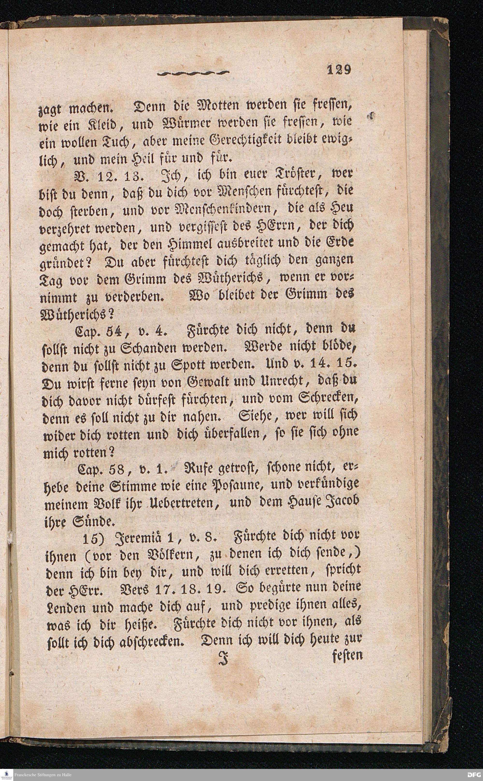 Nicodemus. Ein Tractat über die Menschenfurcht, zur Pflanzung der wahren Furcht Gottes allen Christen besonders aber den Kirchen= und Schul=Lehrern gewidmet von August Hermann Franke[!], weiland Professor der Theologie und Oberprediger zu St.Ulrich, Stifter und Director des Königl.Pädagogiums und Waisenhauses und sämmtlicher damit verbundenen Institute. Sechste Auflage. Halle, in der Buchhandlung des Waisenhauses. 1826.