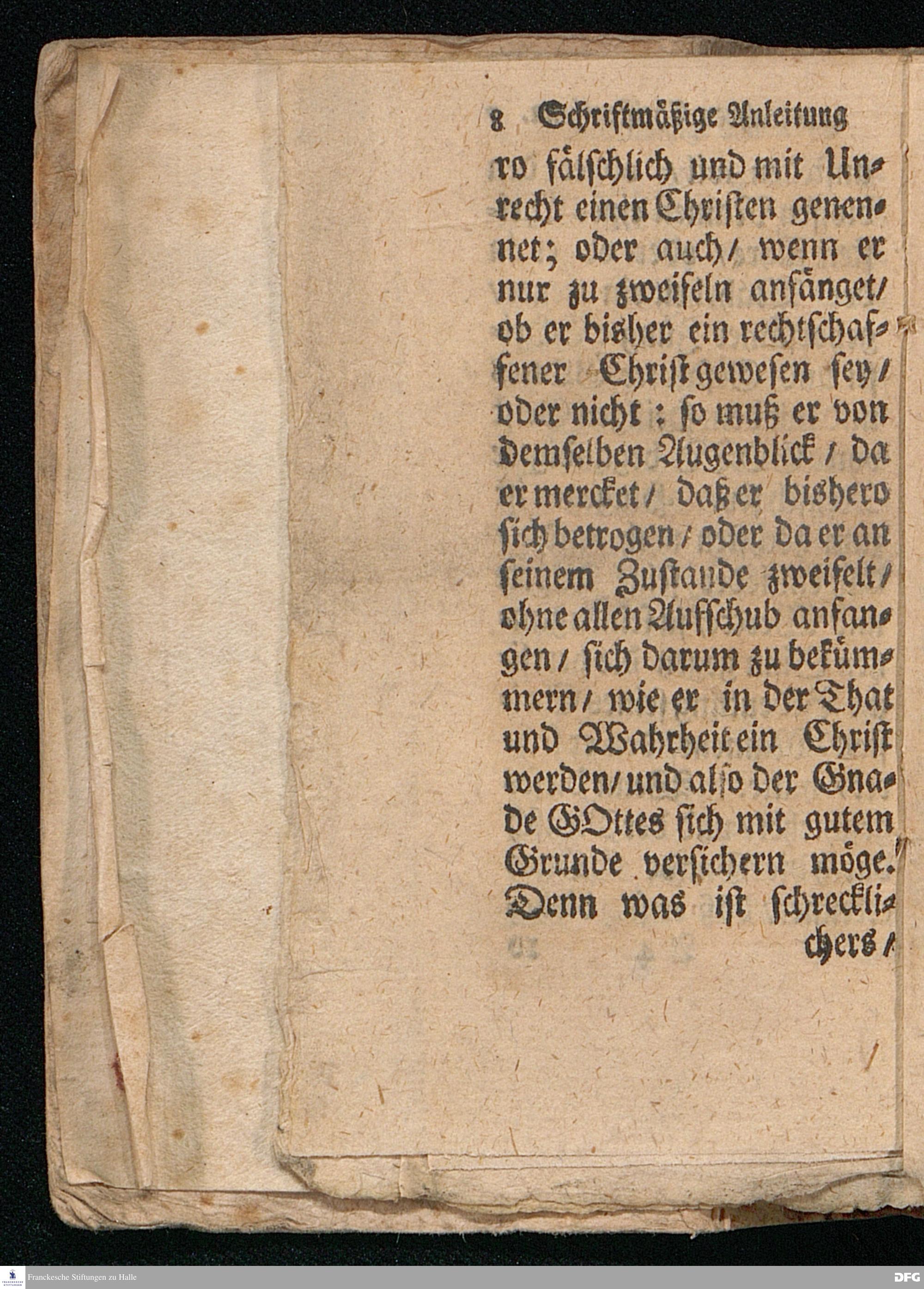 Schriftmäßige und gründliche Anleitung zum Wahren Christenthum / Vormals kürtzer abgefasset / Nun aber Zu mehrer Deutlichkeit und nützlicherm Gebrauch erweitert / Und aufs neue zum Druck gegeben von Aug.Herm.Francken / SS.Th.Prof.zu Halle und Past.zu Glaucha. HALLE / In Verlegung des Wäysen=Hauses. 1710.