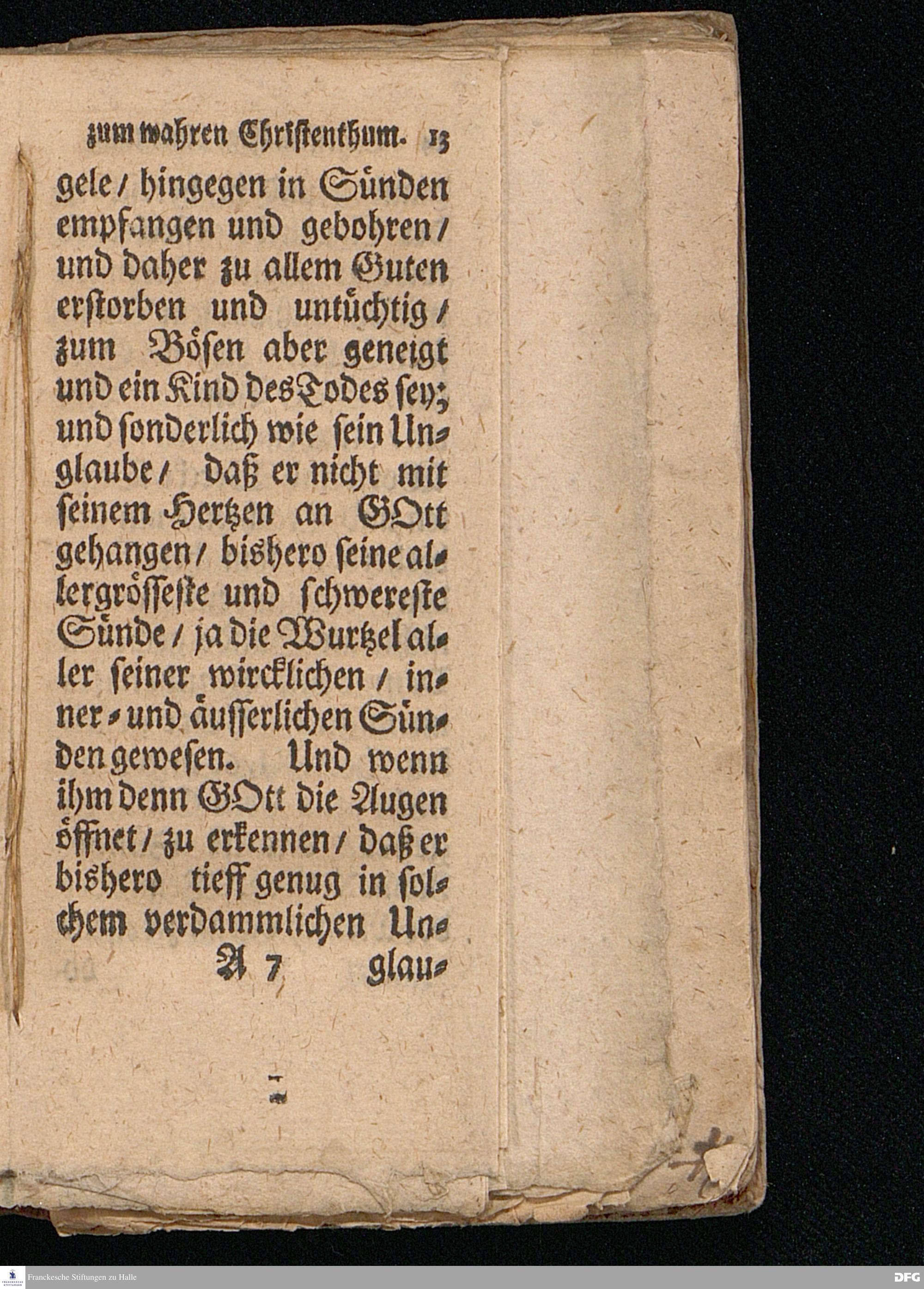 Schriftmäßige und gründliche Anleitung zum Wahren Christenthum / Vormals kürtzer abgefasset / Nun aber Zu mehrer Deutlichkeit und nützlicherm Gebrauch erweitert / Und aufs neue zum Druck gegeben von Aug.Herm.Francken / SS.Th.Prof.zu Halle und Past.zu Glaucha. HALLE / In Verlegung des Wäysen=Hauses. 1710.