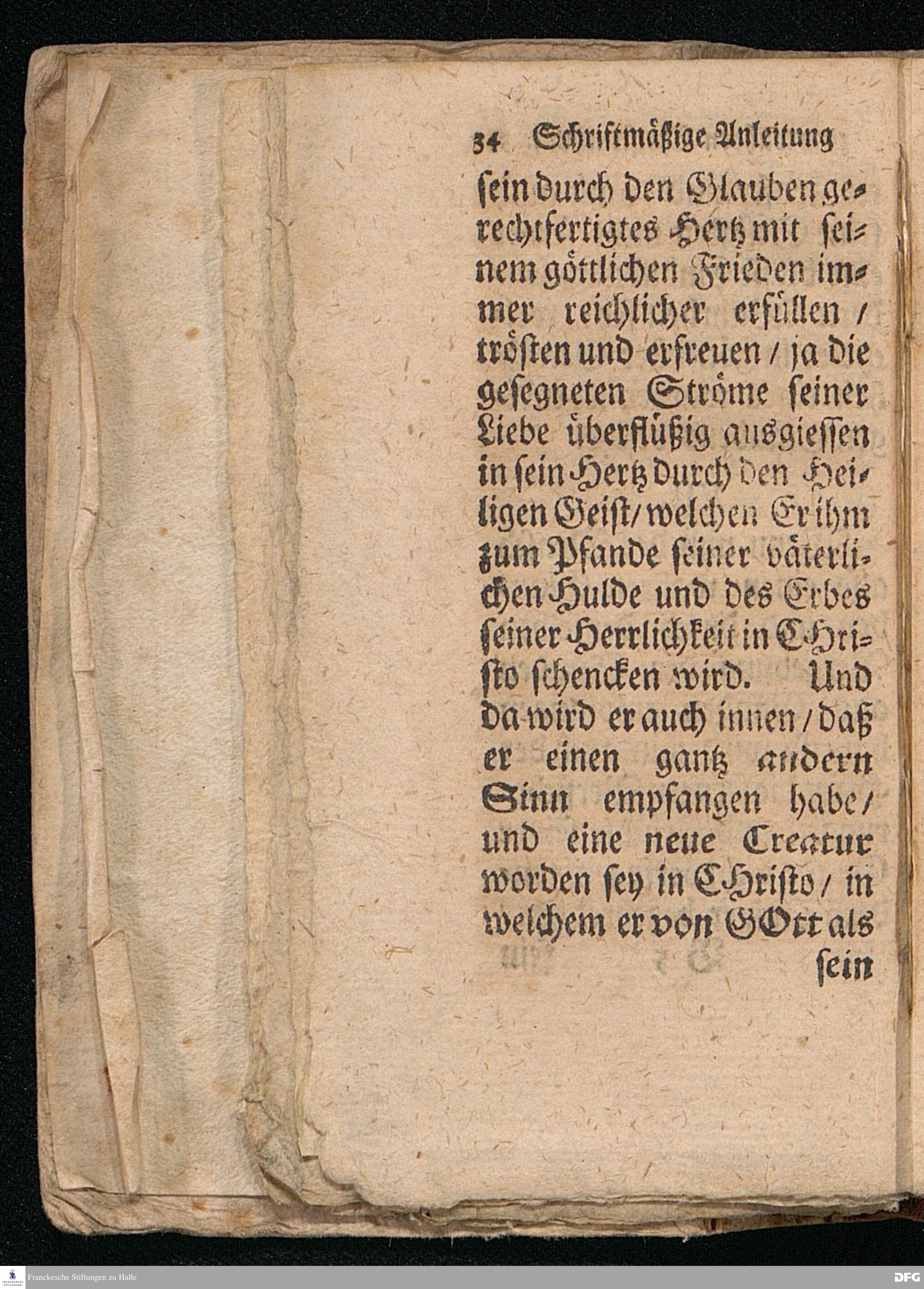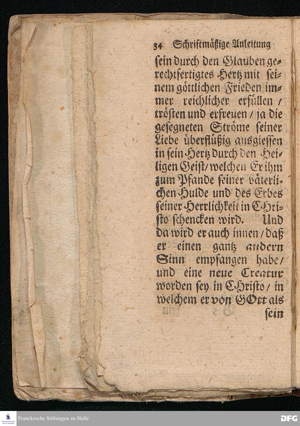 Schriftmäßige und gründliche Anleitung zum Wahren Christenthum / Vormals kürtzer abgefasset / Nun aber Zu mehrer Deutlichkeit und nützlicherm Gebrauch erweitert / Und aufs neue zum Druck gegeben von Aug.Herm.Francken / SS.Th.Prof.zu Halle und Past.zu Glaucha. HALLE / In Verlegung des Wäysen=Hauses. 1710.