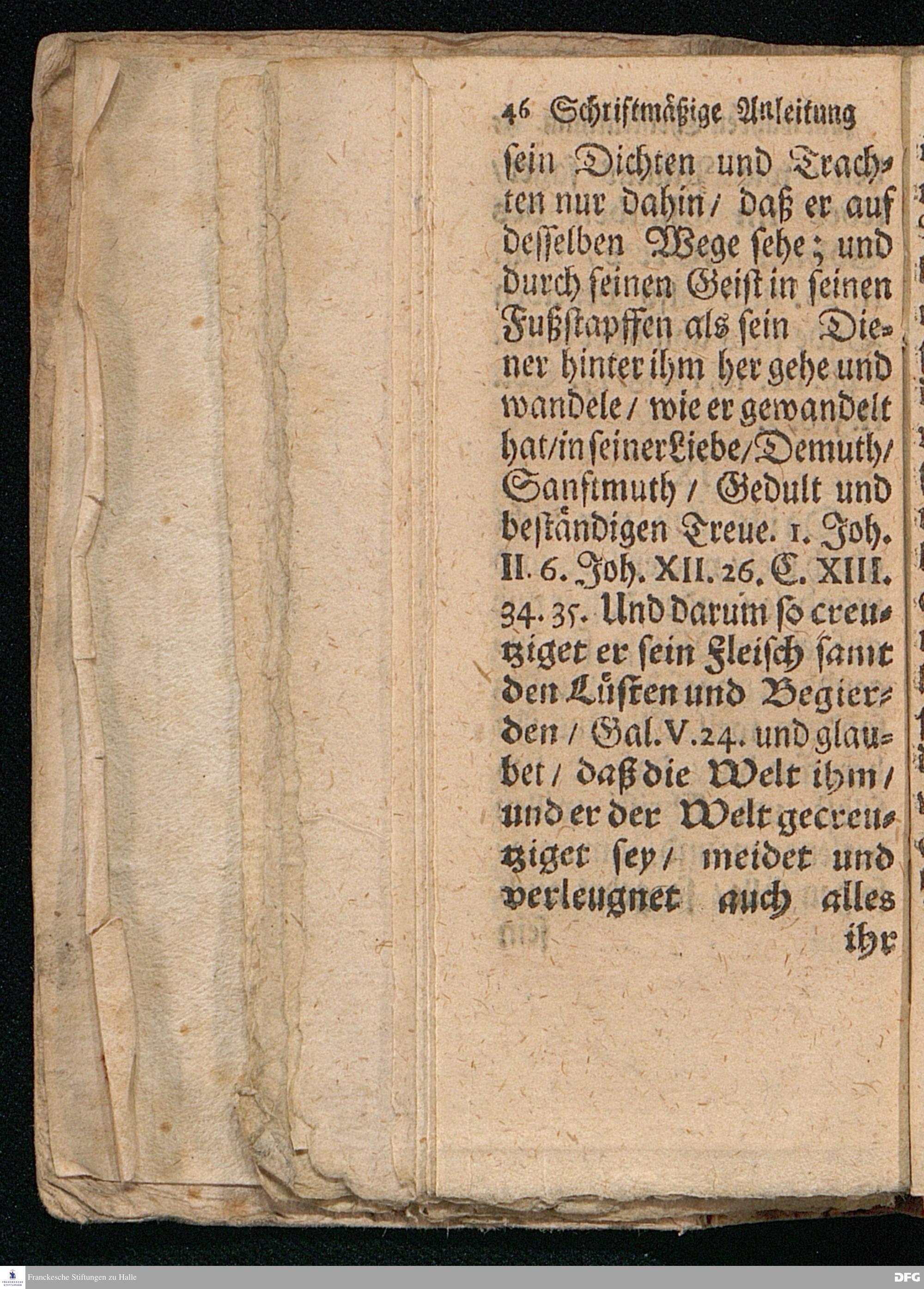 Schriftmäßige und gründliche Anleitung zum Wahren Christenthum / Vormals kürtzer abgefasset / Nun aber Zu mehrer Deutlichkeit und nützlicherm Gebrauch erweitert / Und aufs neue zum Druck gegeben von Aug.Herm.Francken / SS.Th.Prof.zu Halle und Past.zu Glaucha. HALLE / In Verlegung des Wäysen=Hauses. 1710.