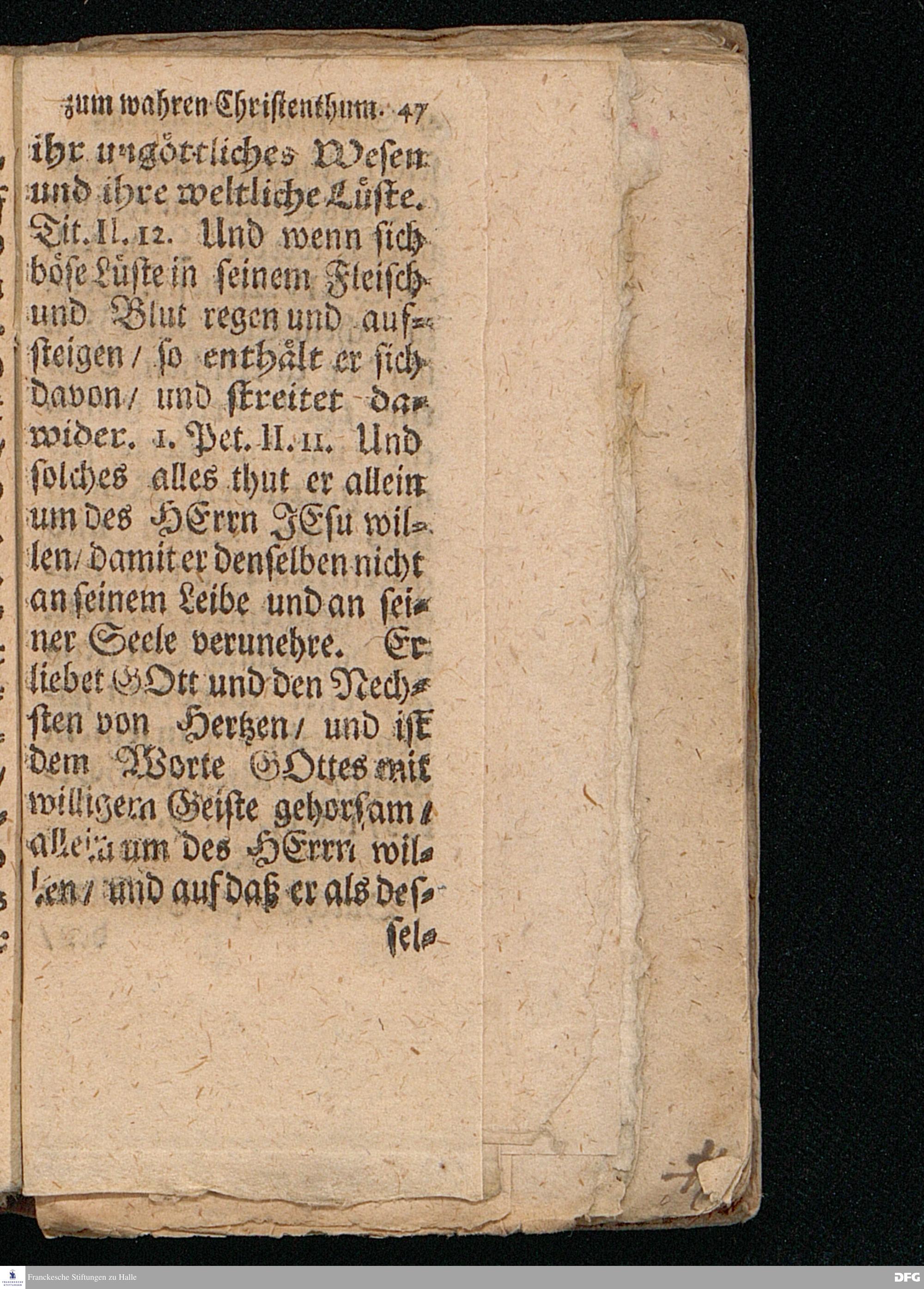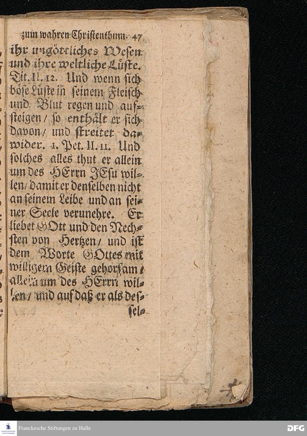 Schriftmäßige und gründliche Anleitung zum Wahren Christenthum / Vormals kürtzer abgefasset / Nun aber Zu mehrer Deutlichkeit und nützlicherm Gebrauch erweitert / Und aufs neue zum Druck gegeben von Aug.Herm.Francken / SS.Th.Prof.zu Halle und Past.zu Glaucha. HALLE / In Verlegung des Wäysen=Hauses. 1710.