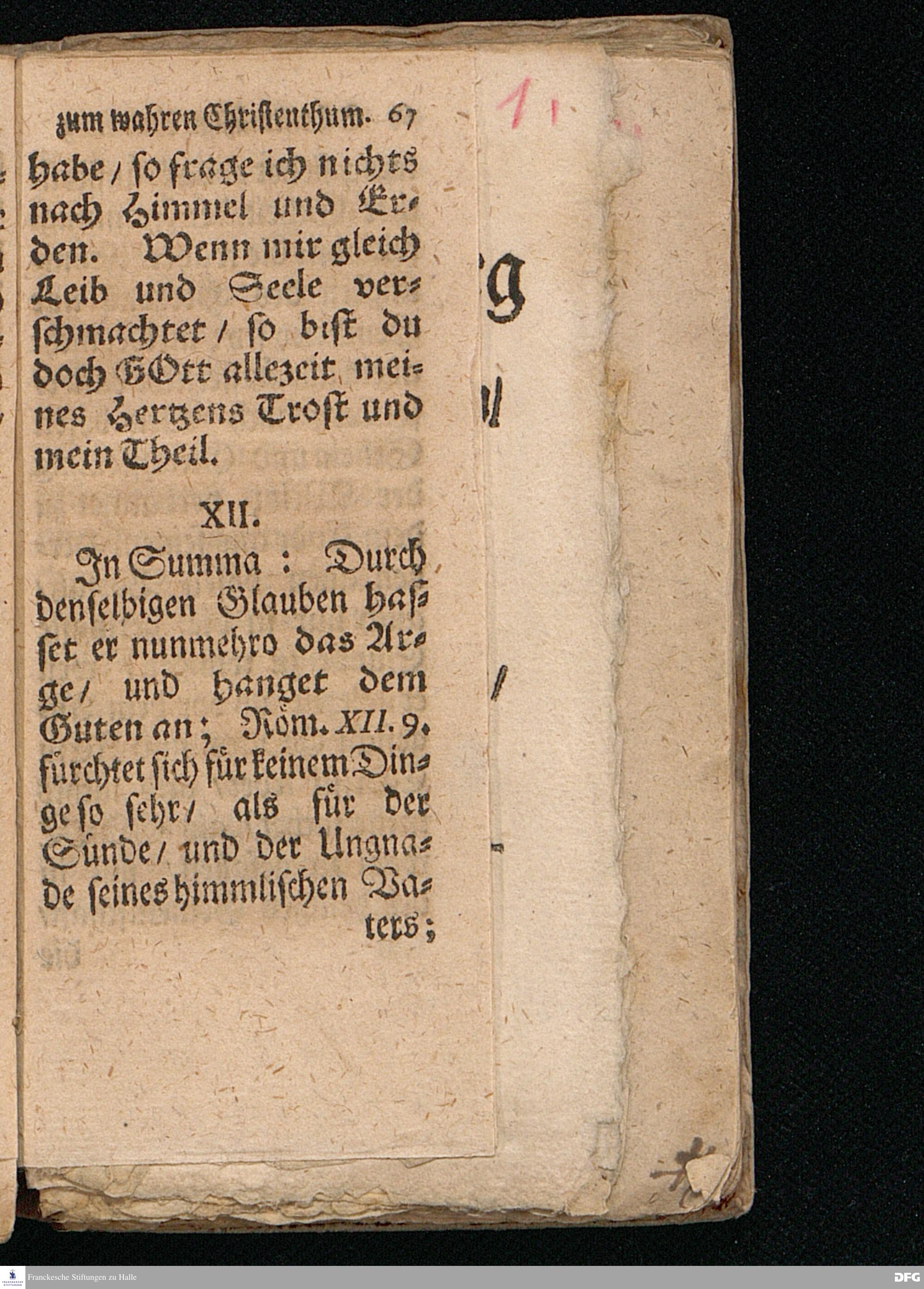 Schriftmäßige und gründliche Anleitung zum Wahren Christenthum / Vormals kürtzer abgefasset / Nun aber Zu mehrer Deutlichkeit und nützlicherm Gebrauch erweitert / Und aufs neue zum Druck gegeben von Aug.Herm.Francken / SS.Th.Prof.zu Halle und Past.zu Glaucha. HALLE / In Verlegung des Wäysen=Hauses. 1710.