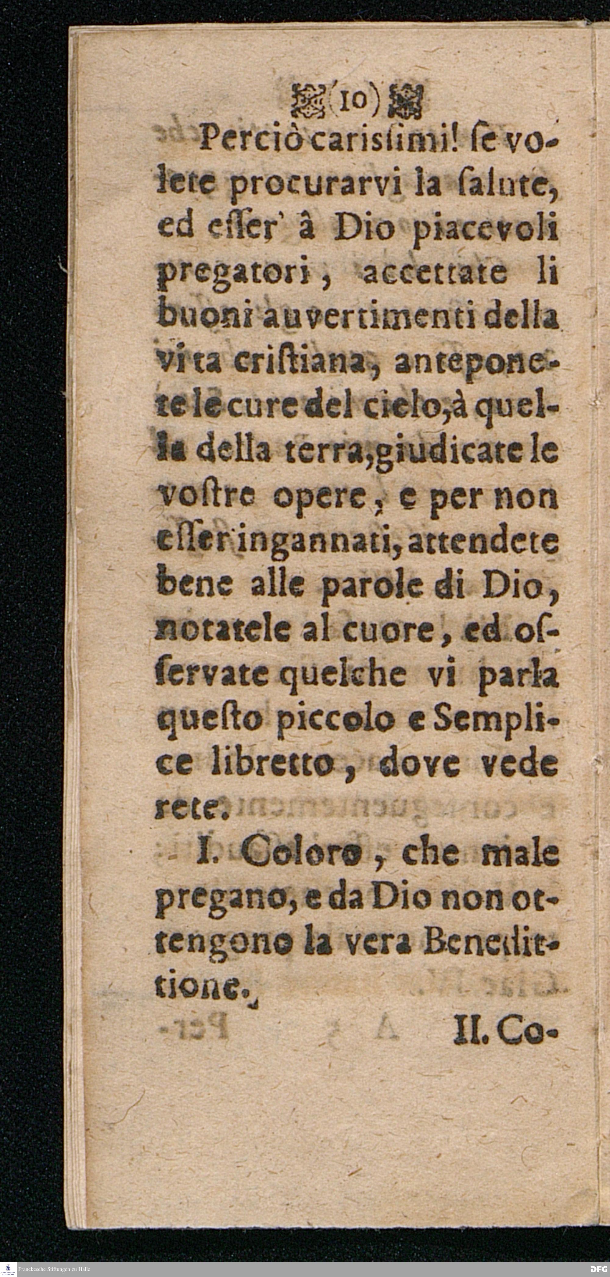 UTILISSIMA DOTTRINA Di bene e piace volmente pregare, Distinta in quattordici Paragrafi ripieni di belle Sentenze e Proverbi della Sacra Scrittura, dell'Evangelio, e de Salmi, Coll'aggiunta delle Preghiere Mattutine e Vepertine, Operate in lingua Todesca dal Molto Reverendo e Dottiss. Sign. Il Signore M. AVGVST. HERM. FRANCHIO, della Lingua Gre. & Orient. P.P. e Pastore in Glauchen vigilantissimo, hora transportata nella proprietà dell' Idioma Toscano all'uso di qualfisa cristiano amatore di Dio e della lingua Italiana dal M. Giorg. Franc. Ludovici, alle proprie Spese Halla
