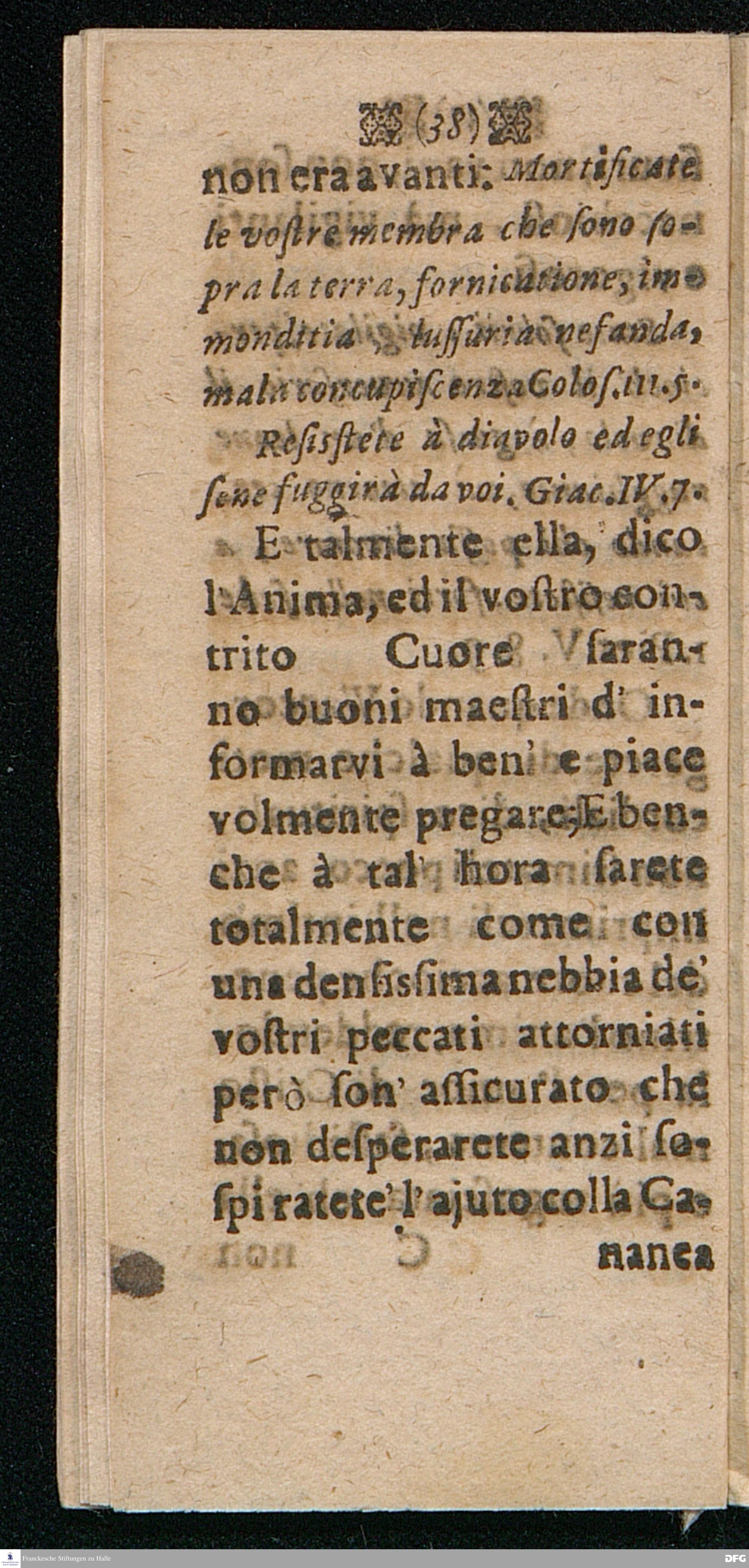 UTILISSIMA DOTTRINA Di bene e piace volmente pregare, Distinta in quattordici Paragrafi ripieni di belle Sentenze e Proverbi della Sacra Scrittura, dell'Evangelio, e de Salmi, Coll'aggiunta delle Preghiere Mattutine e Vepertine, Operate in lingua Todesca dal Molto Reverendo e Dottiss. Sign. Il Signore M. AVGVST. HERM. FRANCHIO, della Lingua Gre. & Orient. P.P. e Pastore in Glauchen vigilantissimo, hora transportata nella proprietà dell' Idioma Toscano all'uso di qualfisa cristiano amatore di Dio e della lingua Italiana dal M. Giorg. Franc. Ludovici, alle proprie Spese Halla